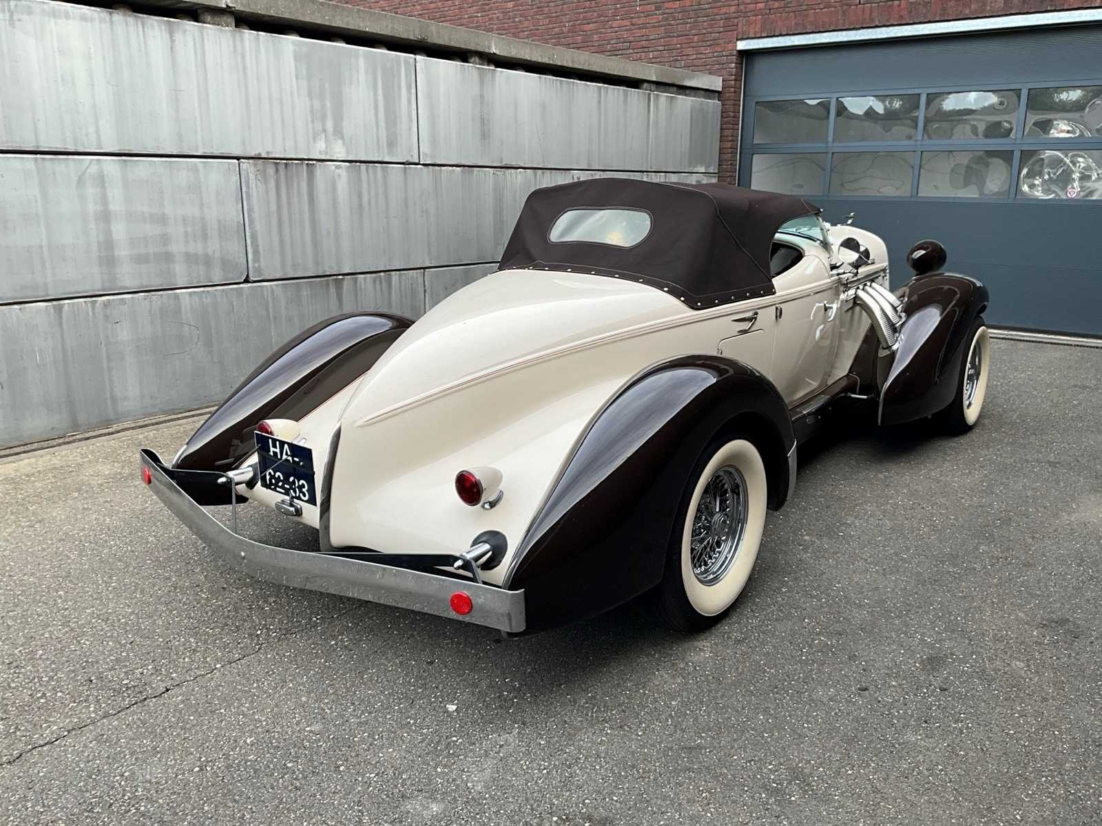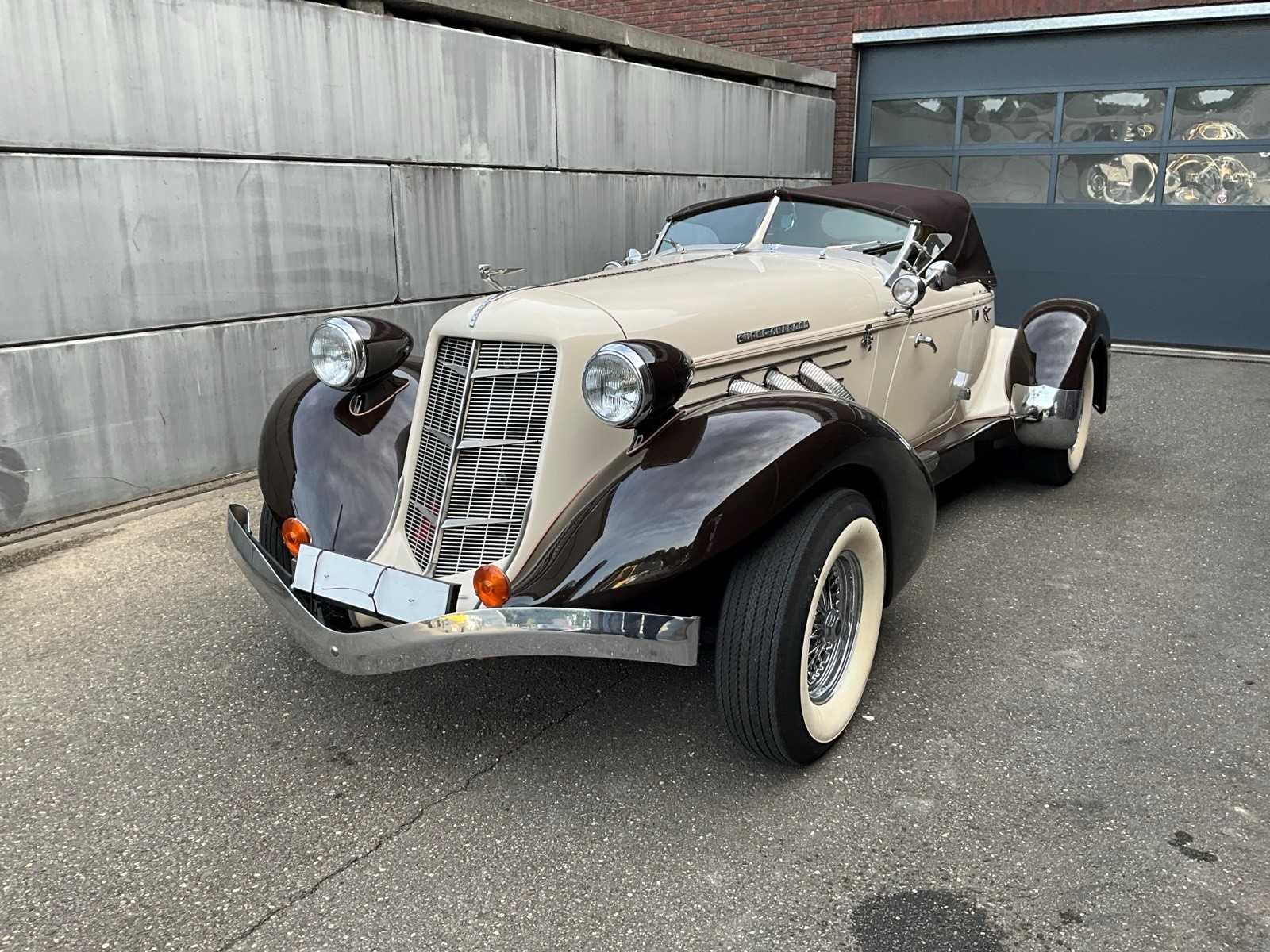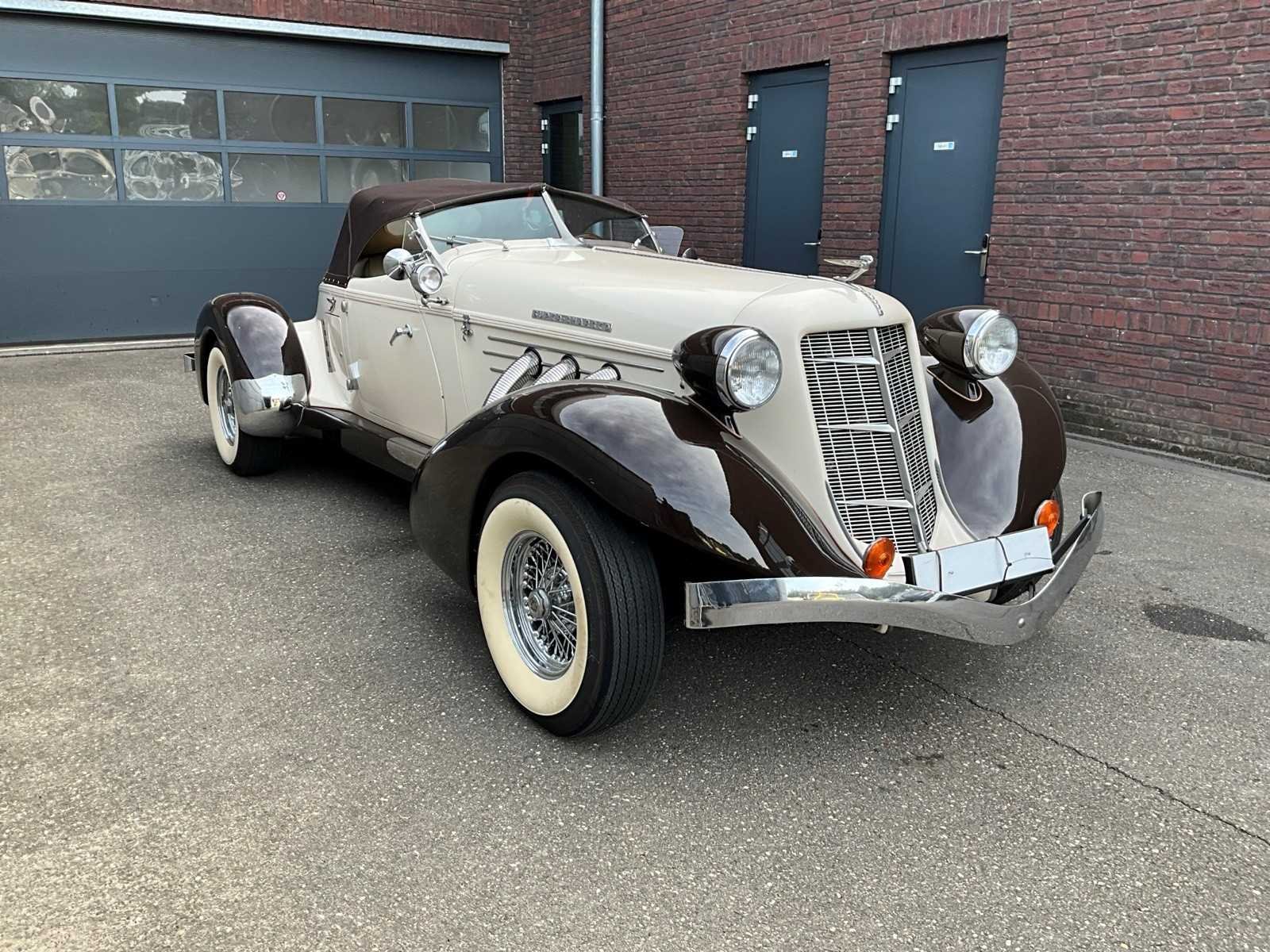 Kenteken: BOR-JZ 153 Merk: Auburn Type: Super Charged Speedster Bouwjaar: 1978 Chassisnummer: CCC771073 Afgelezen mijlenstand: 1955mi Brandstof: Benzine Datum eerste toelating: 01-07-1978 Nationaliteit documenten: Duitsland Kentekenpapieren compleet?: true Transmissie: Handmatig Vermogen (kW): 108kW Aantal deuren: 2 Aantal zitplaatsen: 2 Aantal sleutels: 1 Kleur: Beige Aantal cilinders: 8 Ledig gewicht: 1400 No self drive export!: true
