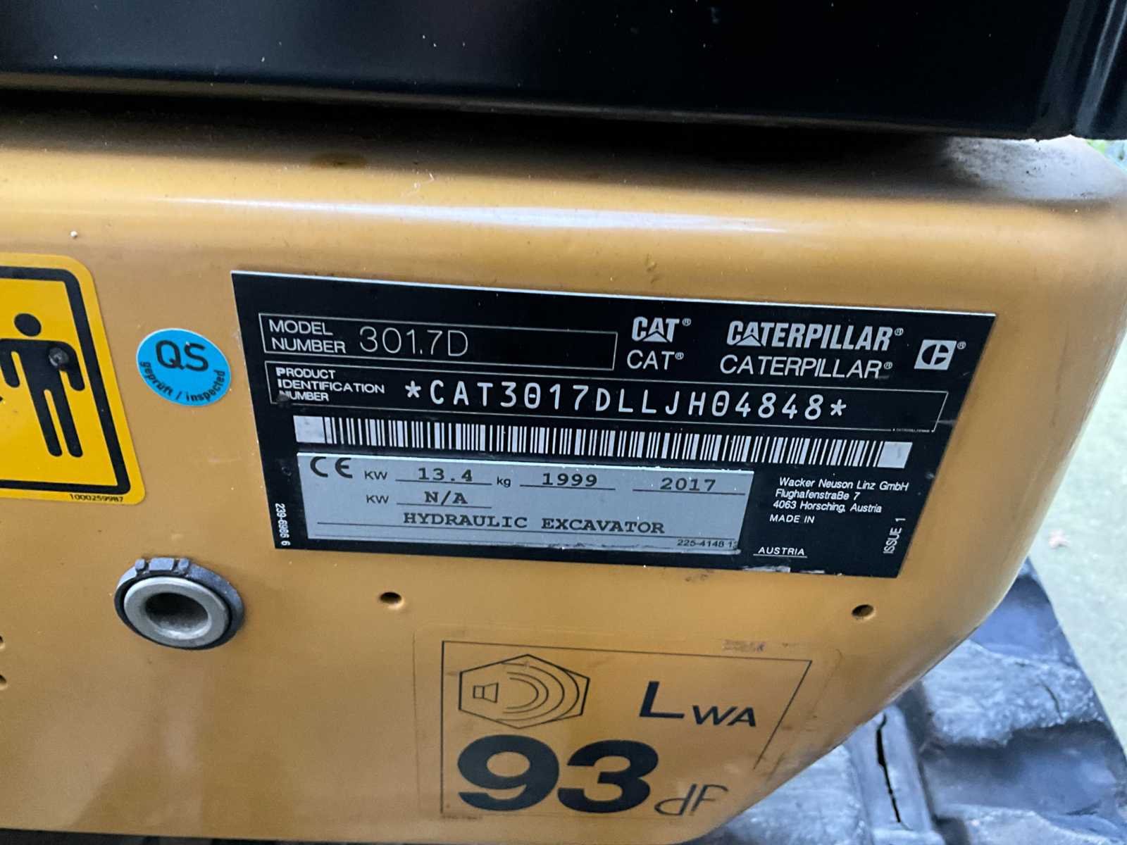 Merk: Caterpillar Type: 301.7D Bouwjaar: 2017 Serienummer: CAT3017DLLJH04848 Motorvermogen (kW): 13.4kW Brandstof: Diesel Bedrijfsgewicht: 1999kg Afgelezen urenstand: 986.4