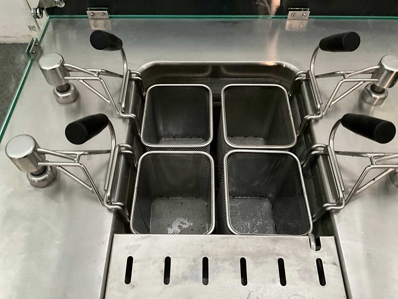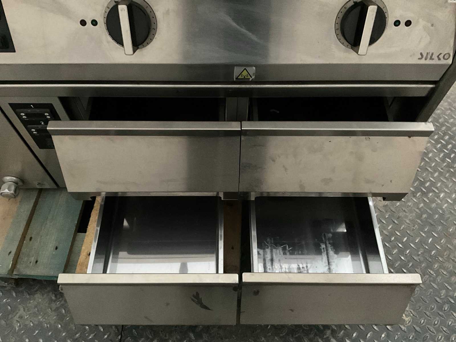 Voorzien van waterfrituur; 2 Shott Ceran inductie wok punten; 4 lades. Merk: Silko Type: Pastakeuken Kleur: Grijs Lengte: 1560 Breedte: 1100 Hoogte: 1300 Materiaal: RVS