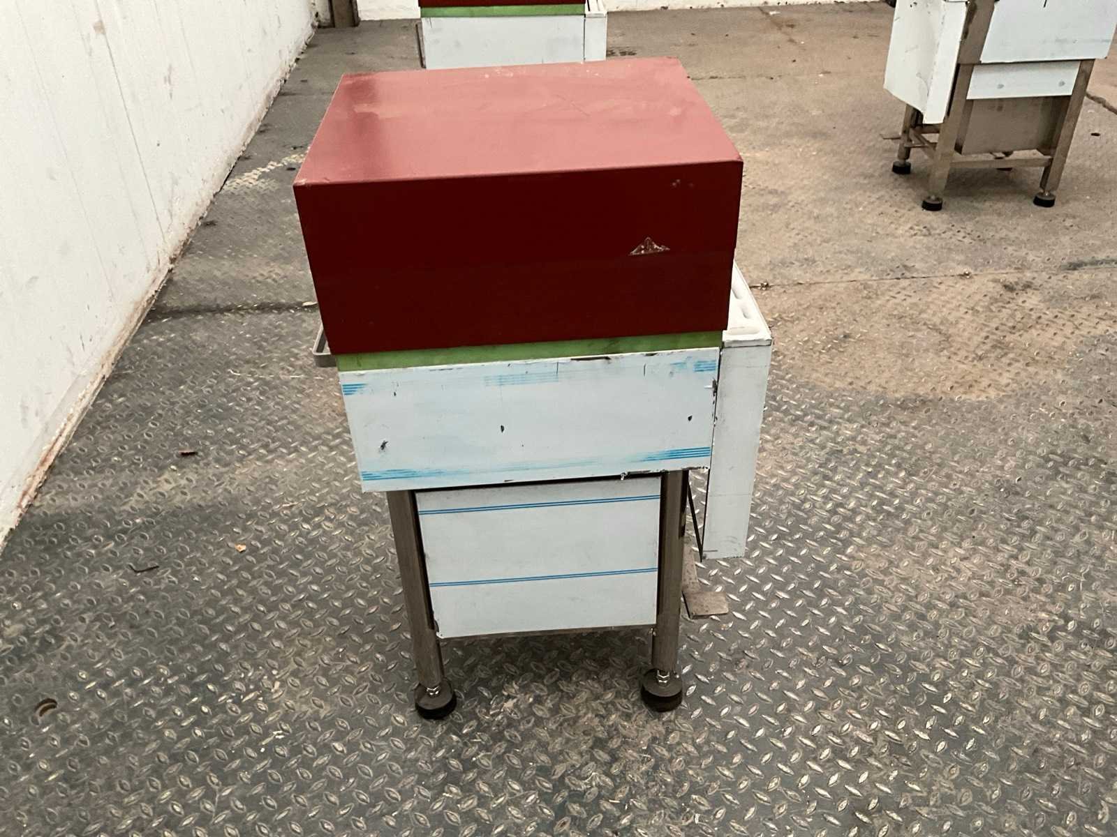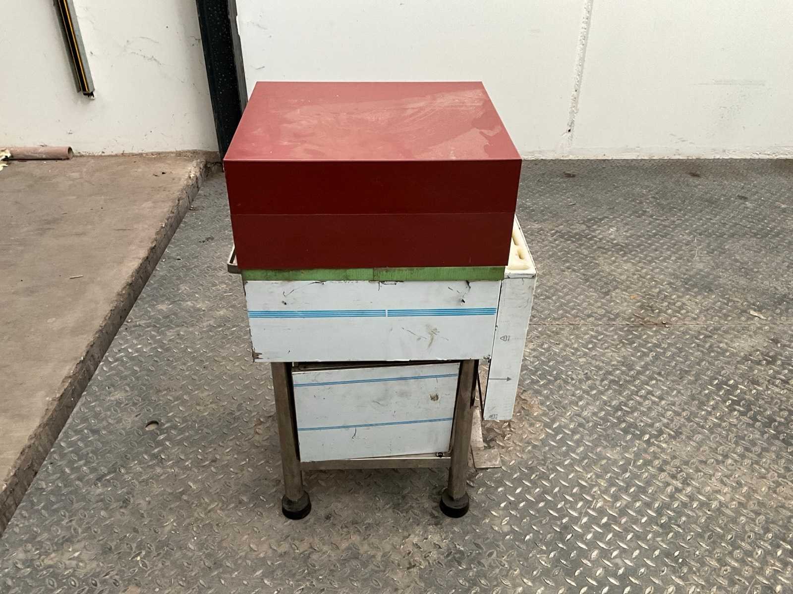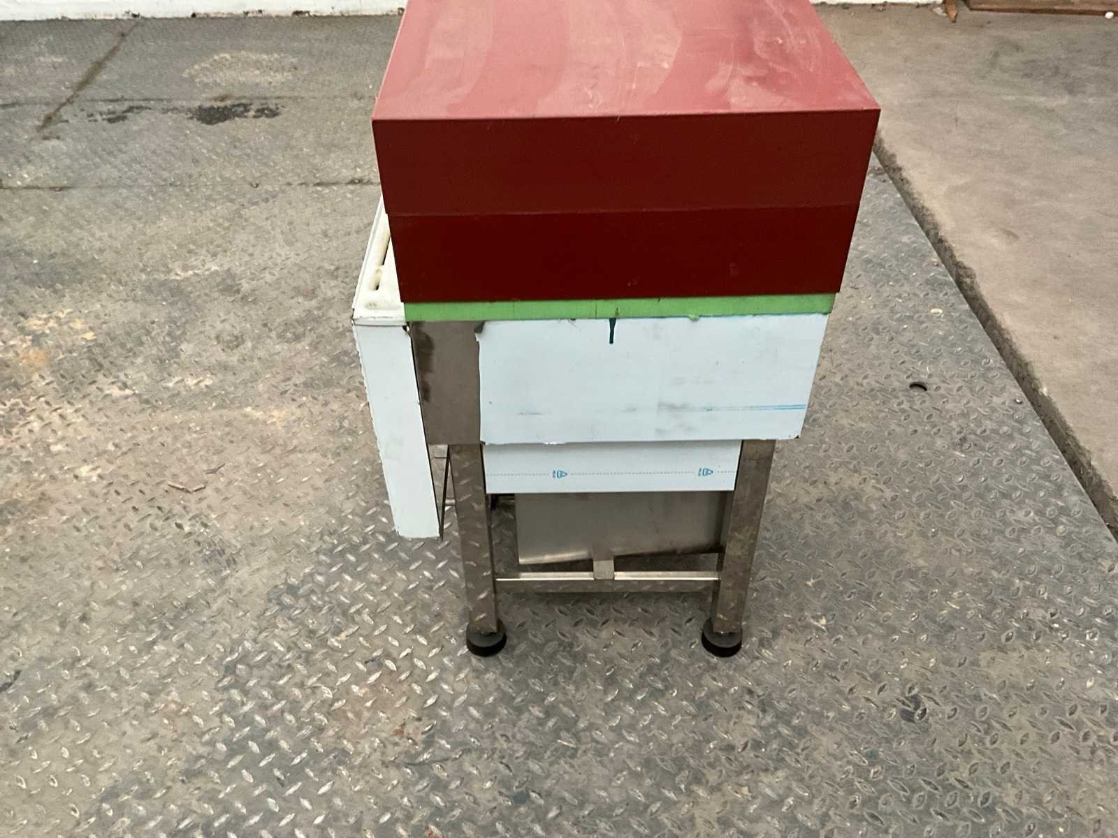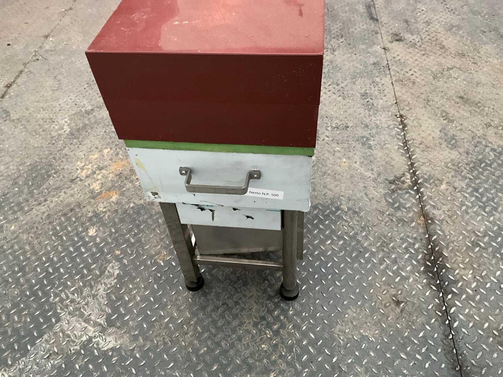 Snijblok met rvs onderstel en afvalbak Totale afmeting L: 400mm Totale afmeting Breedte: 450mm Totale afmeting Hoogte: 860mm