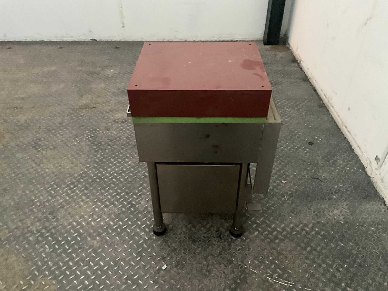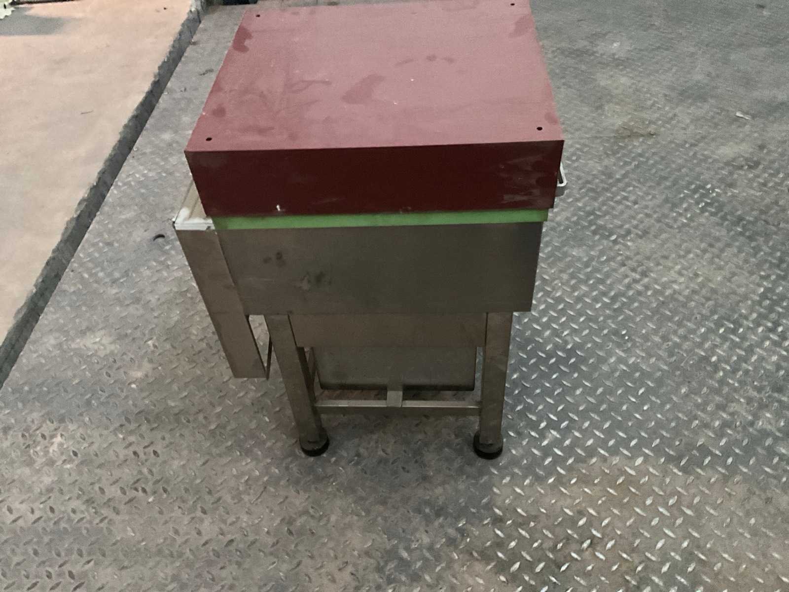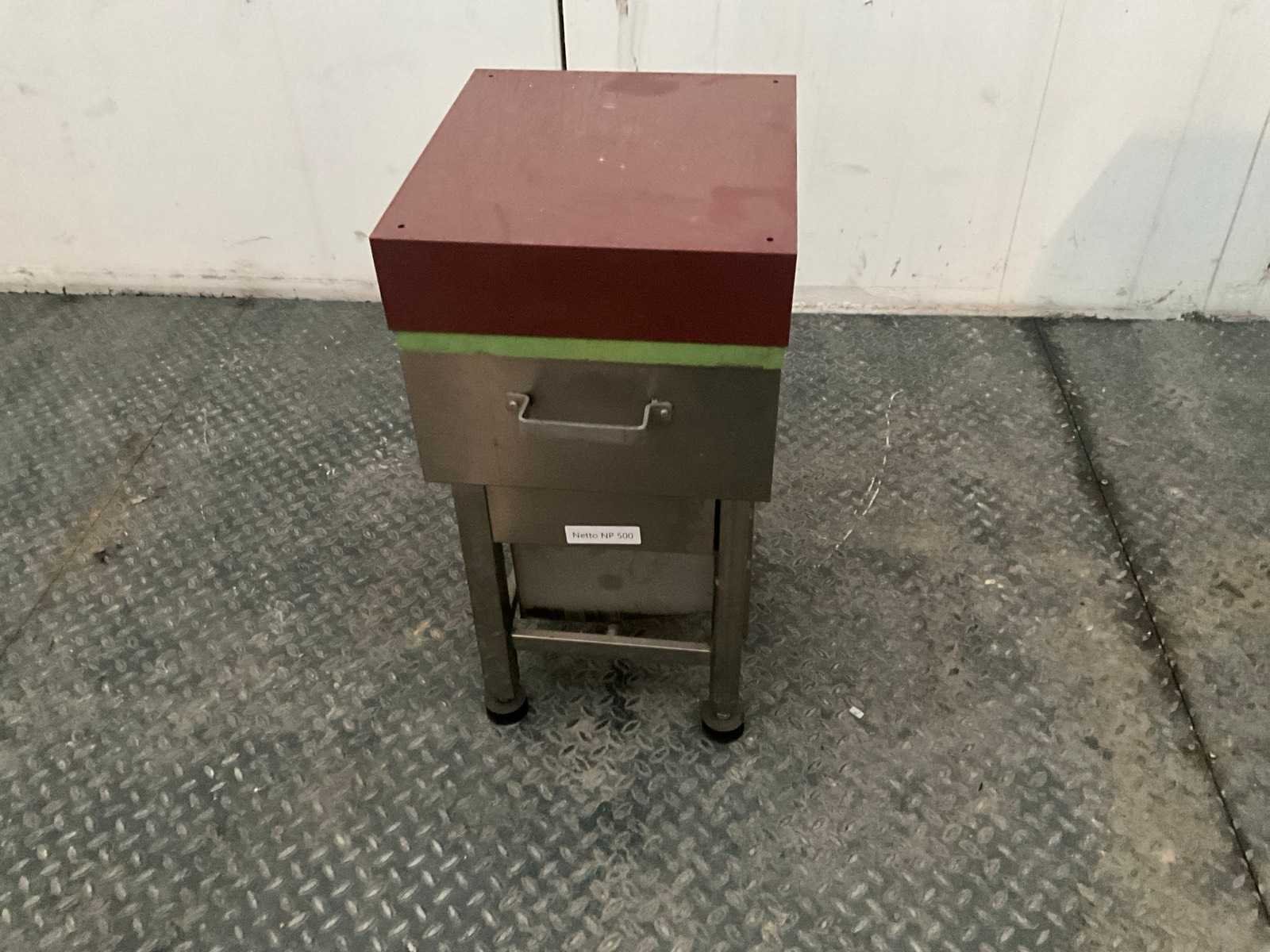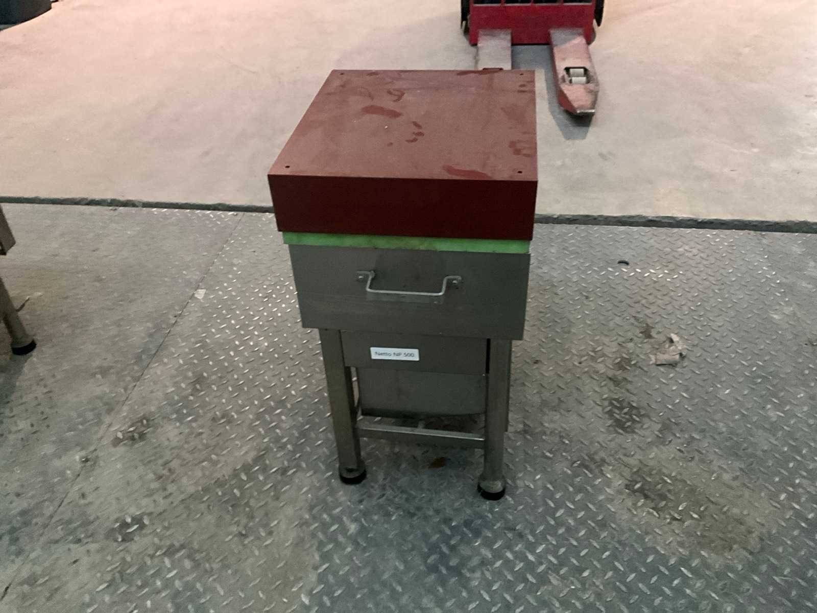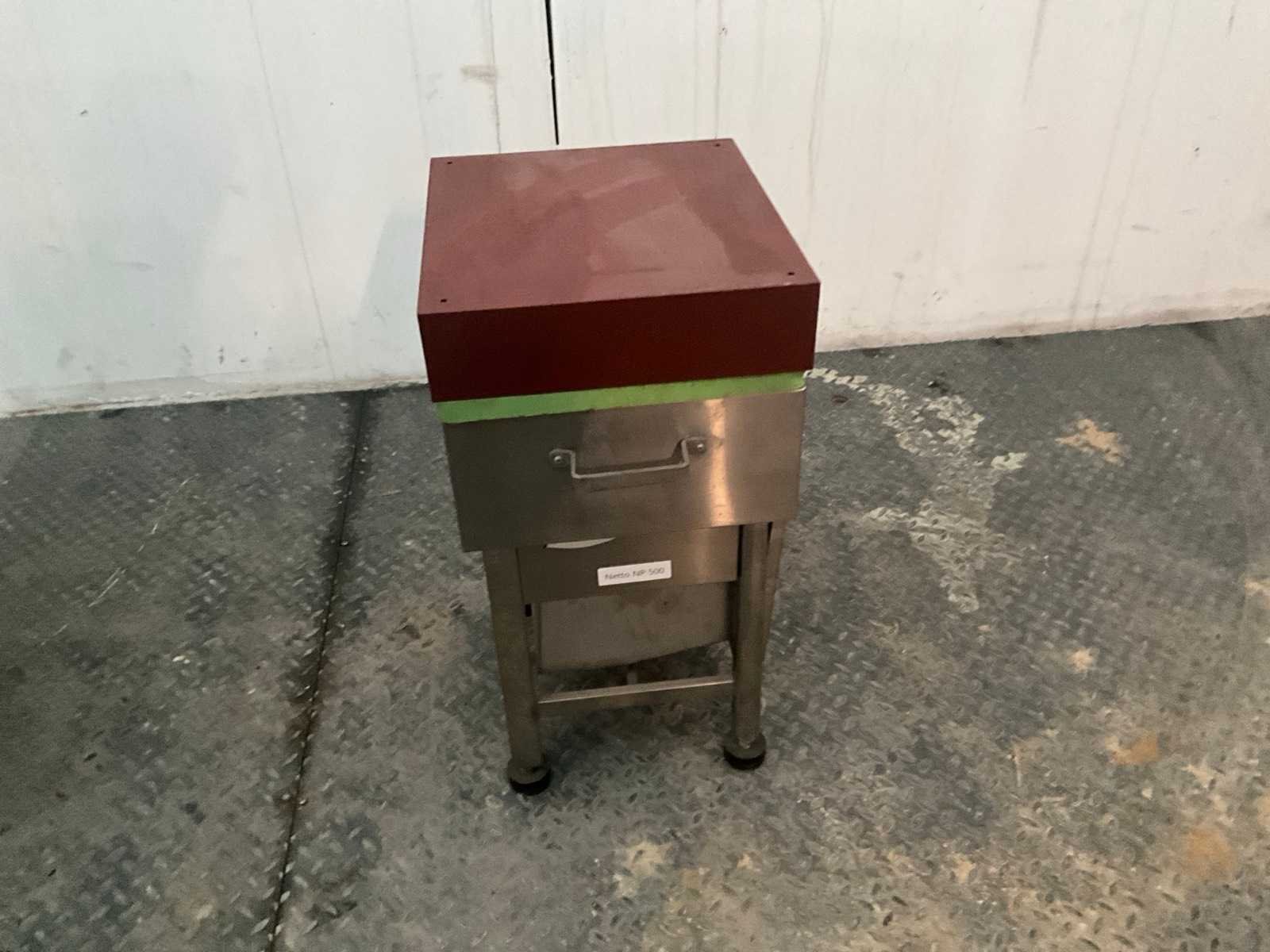 Snijblok met rvs onderstel en afvalbak Totale afmeting L: 400mm Totale afmeting Breedte: 450mm Totale afmeting Hoogte: 770mm