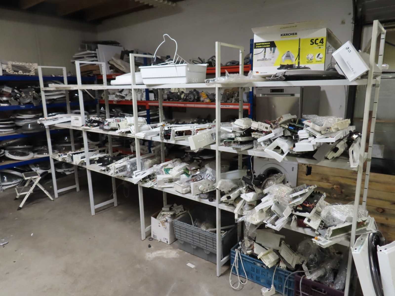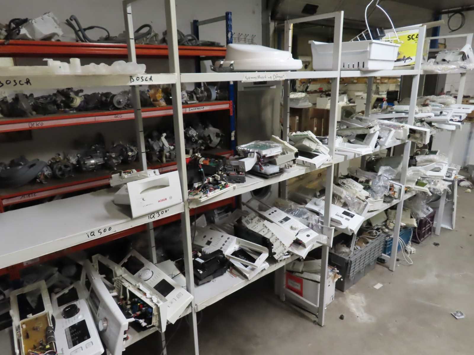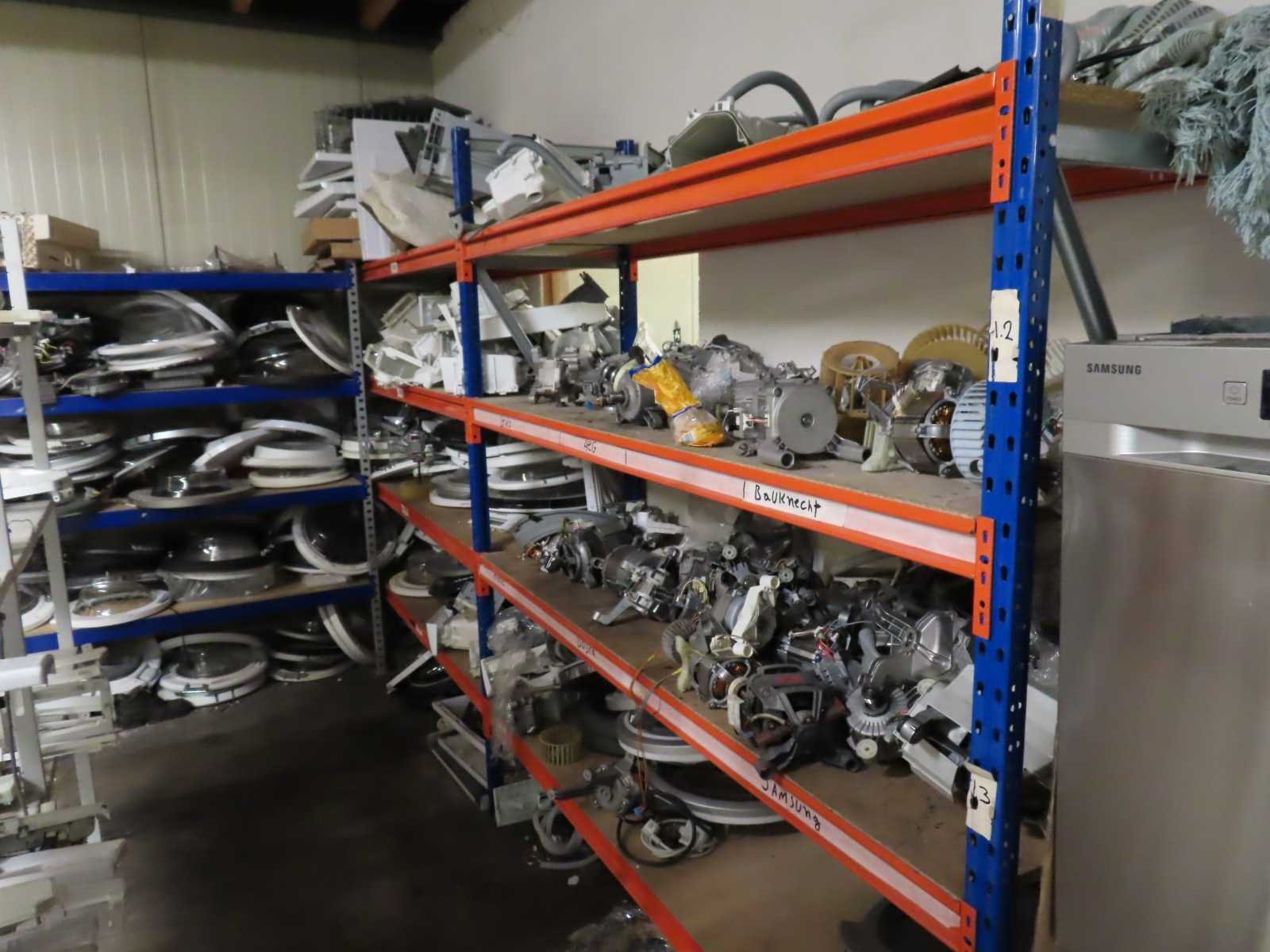 Partij witgoed onderdelen inclusief stellingmateriaal. De koop is op basis van cherry picking, u hoeft alleen de apparaten mee te nemen welke u wenselijk acht.