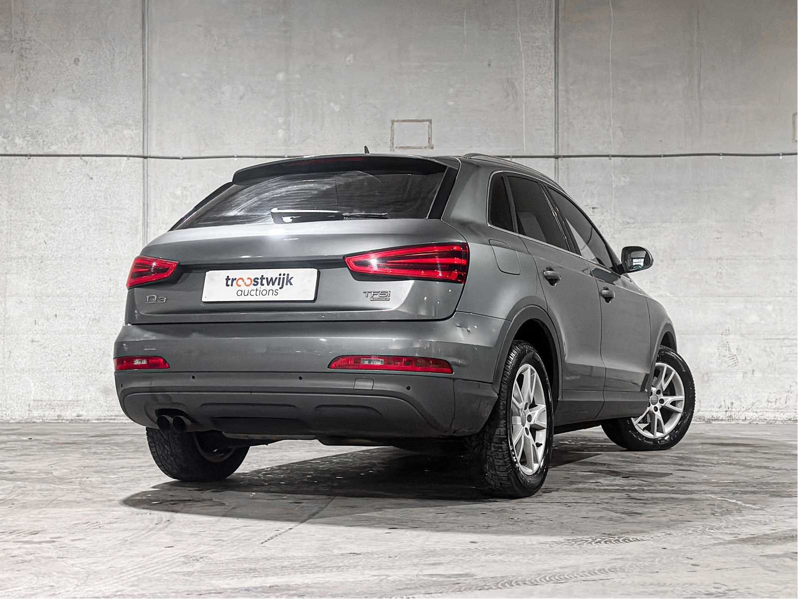 Kenteken: L-800-RZ Merk: Audi Model: Q3 Type: 2.0 TFSI Quattro S Edition Afgelezen kilometerstand: 131921km Cilinderinhoud: 1984cc Vermogen (kW): 125kW Brandstof: Benzine Chassisnummer: WAUZZZ8U9DR024885 NAP status: Geen oordeel Datum eerste toelating: 2012-09-04 Datum eerste toelating (NL): 2021-07-14 APK vervaldatum: 2026-03-28 Vermogen (pk): 170hp Aandrijving: Vierwielaandrijving Aantal zitplaatsen: 5 Kleur: grijs Transmissie: Automaat Stuurwiel: Links Emissieklasse: 5 Aantal deuren: 4 Ledig gewicht: 1530kg Bruto BPM (NL): 10710€ Rest BPM: 0€ Aantal cilinders: 4 Carrosserie: SUV Nationaliteit documenten: Nederlandse kentekendocumenten Onderhoudshistorie: Ja, gedeeltelijk