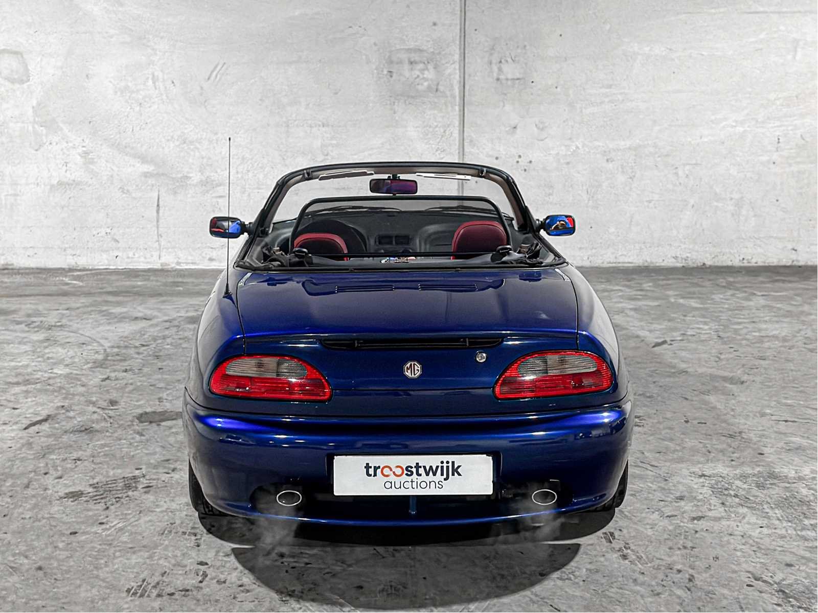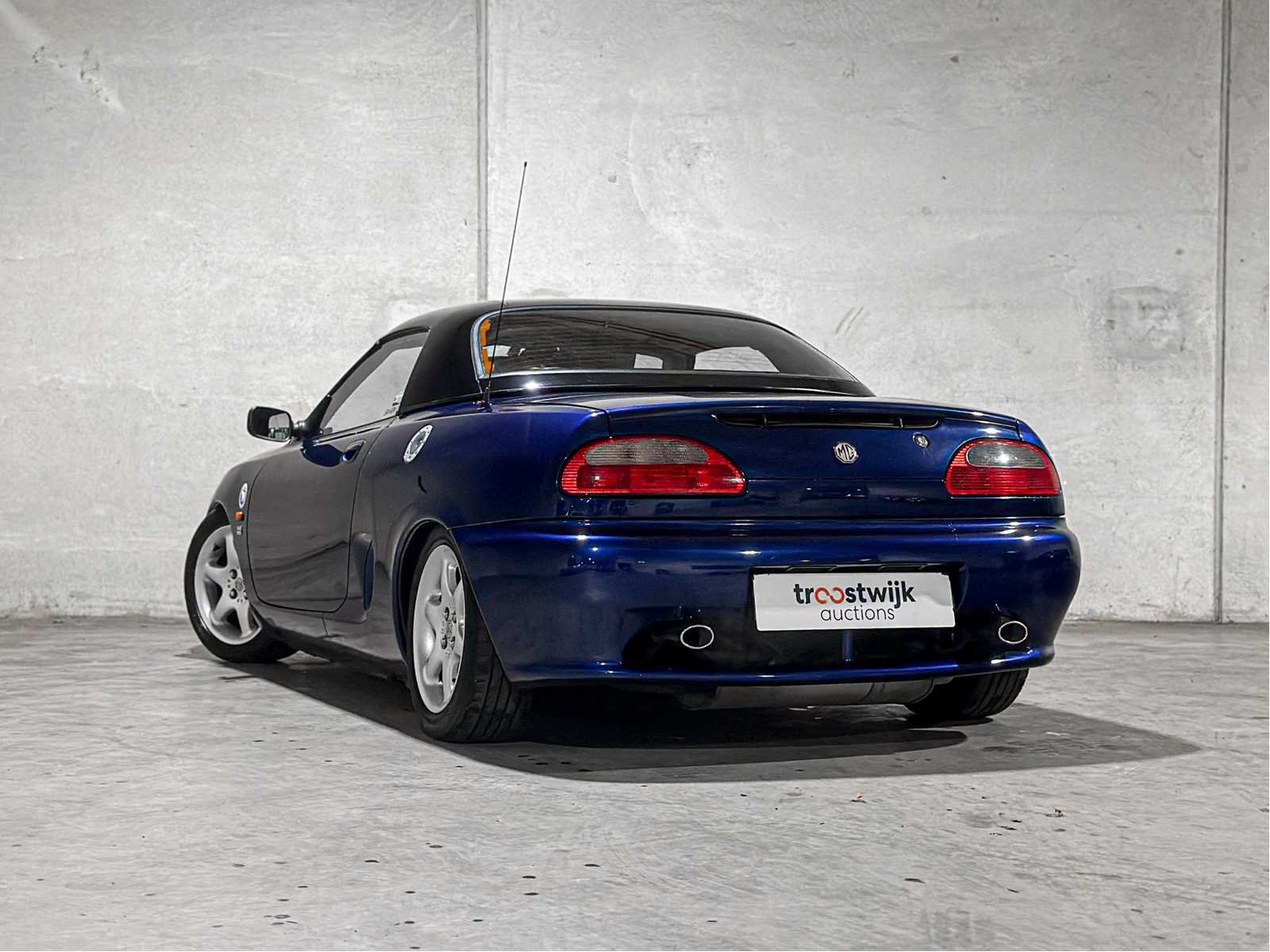 Kenteken: SB-FX-15 Merk: MG Model: F Type: 1.8i Afgelezen kilometerstand: 100728km Cilinderinhoud: 1796cc Vermogen (kW): 88kW Brandstof: Benzine NAP status: Logisch Datum eerste toelating: 1997-08-15 Datum eerste toelating (NL): 1997-08-15 APK vervaldatum: 2026-07-17 Vermogen (pk): 120hp Aandrijving: Achterwielaandrijving Kleur: blauw Transmissie: Handgeschakeld Stuurwiel: Links Emissieklasse: 2 Aantal deuren: 2 Ledig gewicht: 1049kg Bruto BPM (NL): 6824€ Aantal cilinders: 4 Carrosserie: cabriolet Nationaliteit documenten: Nederlandse kentekendocumenten Onderhoudshistorie: ja, gedeeltelijk
