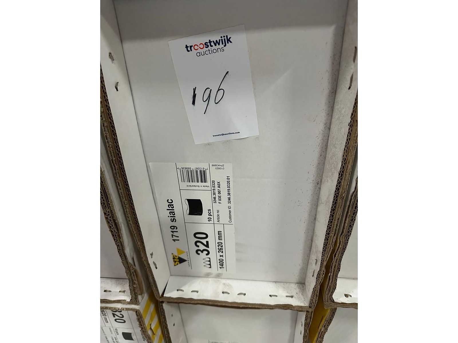 Ongebruikte schuurbanden korrel 320. Afmetingen 1400 mm x 2620 mm 9x 10 Stuks dus totaal 90 stuks Merk: Sialac Type: Sia 1719