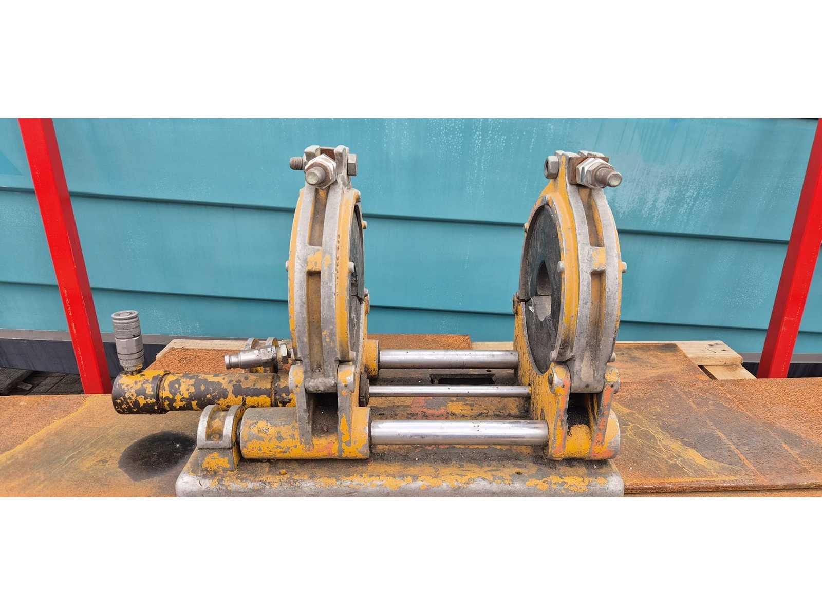 Kleminstallatie om buiten van kunststof te klemmen en naar elkaar toe te trekken tijdens het lassen