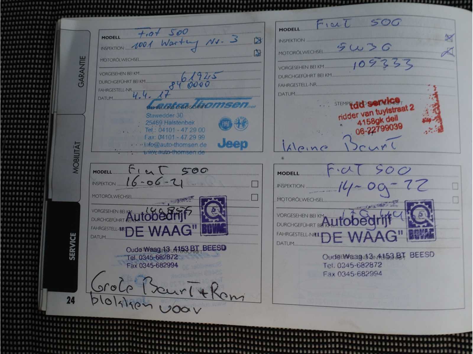 Voor vragen kunt u mailen naar info@auto-auctions.nl Kenteken: RJ-980-F Merk: Fiat Model: 500 C Type: 0.9 TwinAir Lounge Afgelezen kilometerstand: 210337km Cilinderinhoud: 875cc Vermogen (kW): 63kW Brandstof: Benzine Chassisnummer: ZFA31200000840000 Datum eerste toelating: 2012-06-28 Datum eerste toelating (NL): 2017-11-28 APK vervaldatum: 2026-12-19 Vermogen (pk): 84hp Aantal zitplaatsen: 4 Kleur: wit Transmissie: Automaat Emissieklasse: 5 Aantal deuren: 2 Aantal sleutels: 2 Ledig gewicht: 955kg Aantal cilinders: 2 Carrosserie: hatchback Onderhoudshistorie: Volledig Aanwezig Start en rijdt: Ja