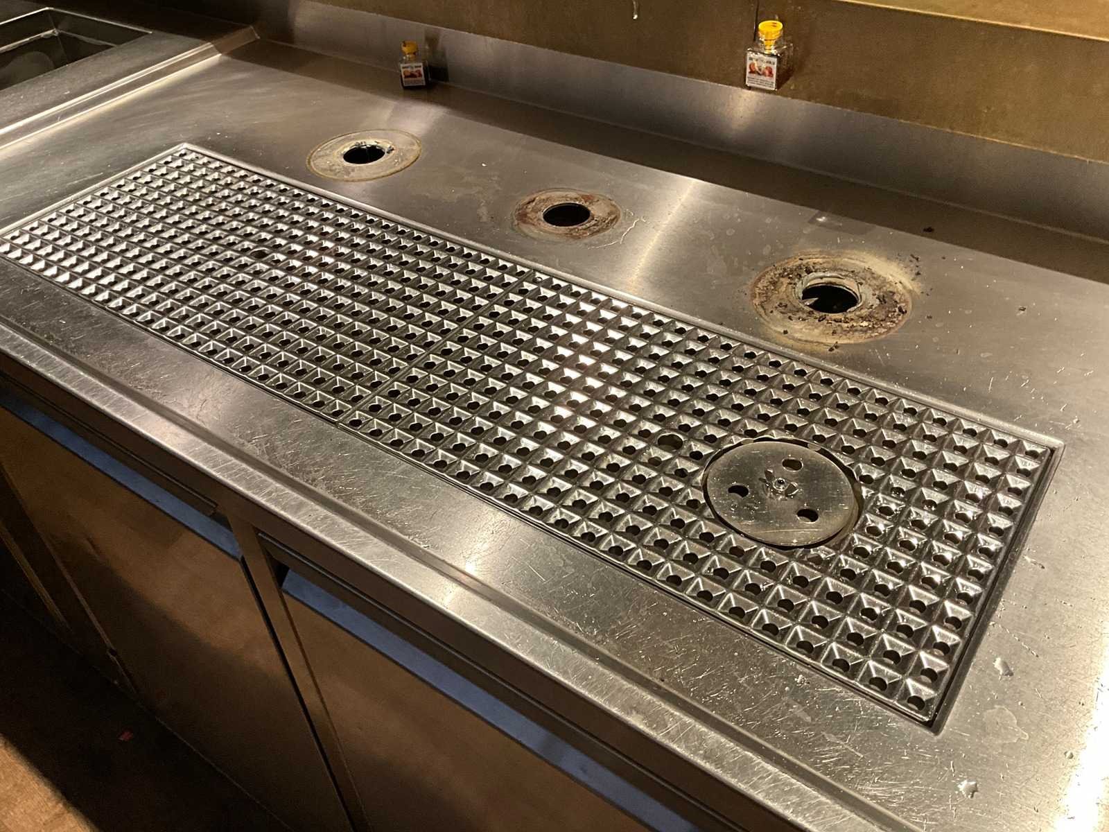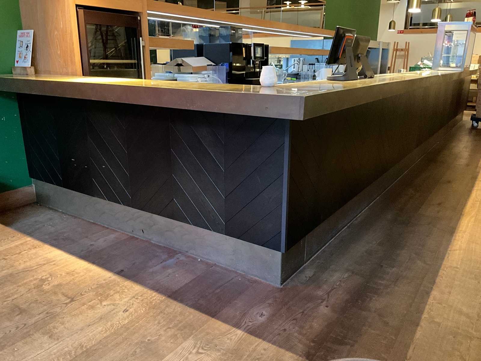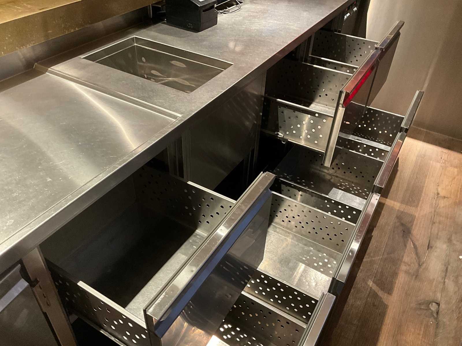Bar v.v. barkoeling met 12 lades, fustenkoeling en koelvitrine (AKE-Ideal). LET OP! Kavel betreft een apparaat wat aangesloten is op een centraal koelsysteem. Kavel heeft geen eigen koelcompressor. Het centrale koelsysteem is reeds professioneel leeg gepompt. Hiervoor zijn additionele kosten van toepassing. LET OP! Deze kavel maakt onderdeel uit van een combinatie kavel (kavelnummer 1) deze kavel blijft onder gunning totdat de combinatie kavel gesloten is. De koper is zelf verantwoordelijk voor het professioneel demonteren van de kavel. Kavel kan aangesloten zijn op het elektra-, water- en/of gasleidingnetwerk. Bekabeling en/of leidingen dienen netjes afgedopt en ordelijk achter gelaten te worden. Schade aan het pand of andere zaken zal op de koper worden verhaald. Wij adviseren u gebruik te maken van de kijkdag om een plan voor demontage op te stellen. Totale afmeting L: 9150mm Totale afmeting Breedte: 2850mm Totale afmeting Hoogte: 1850mm