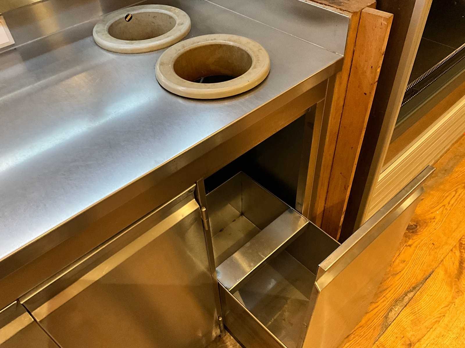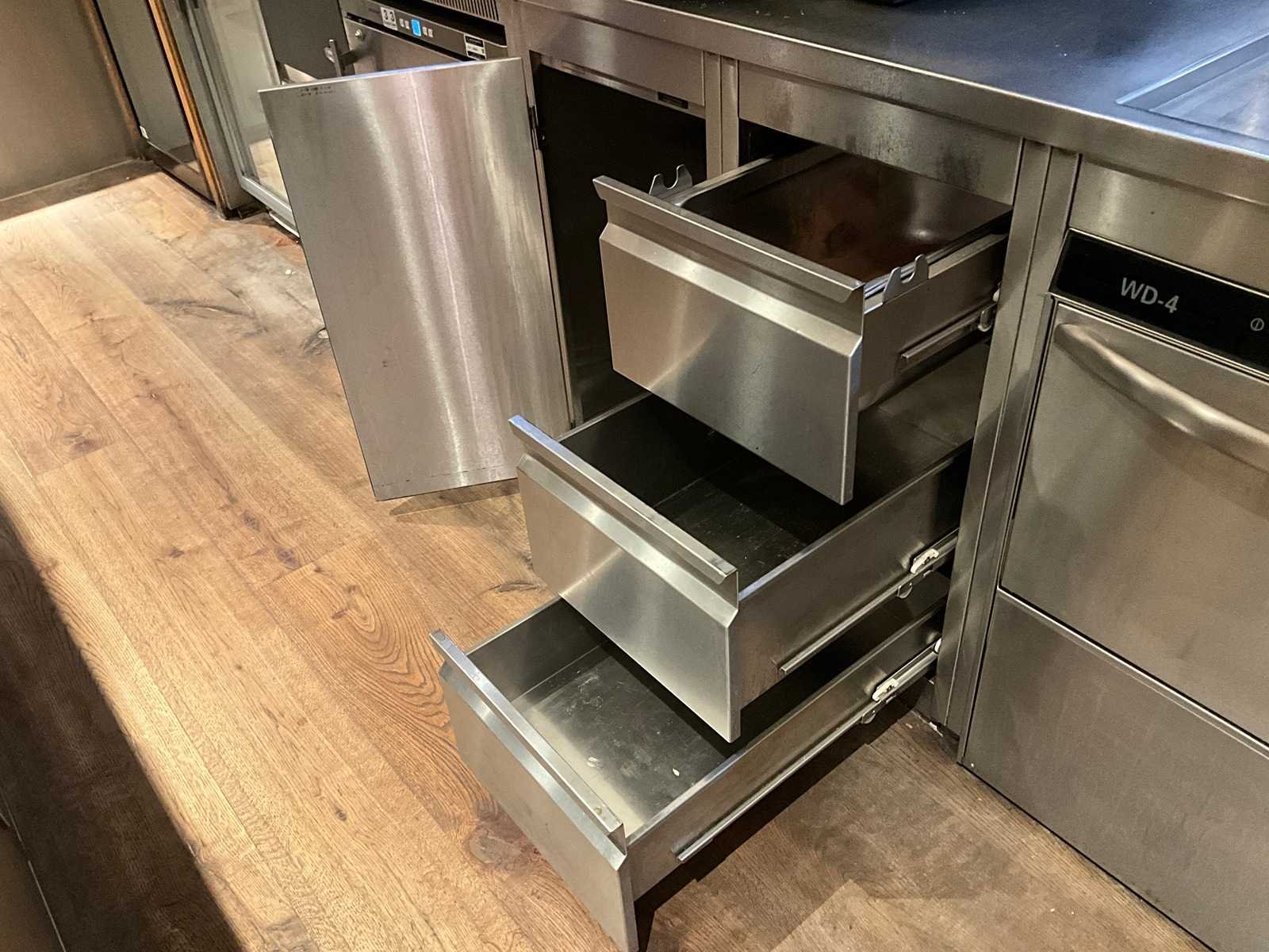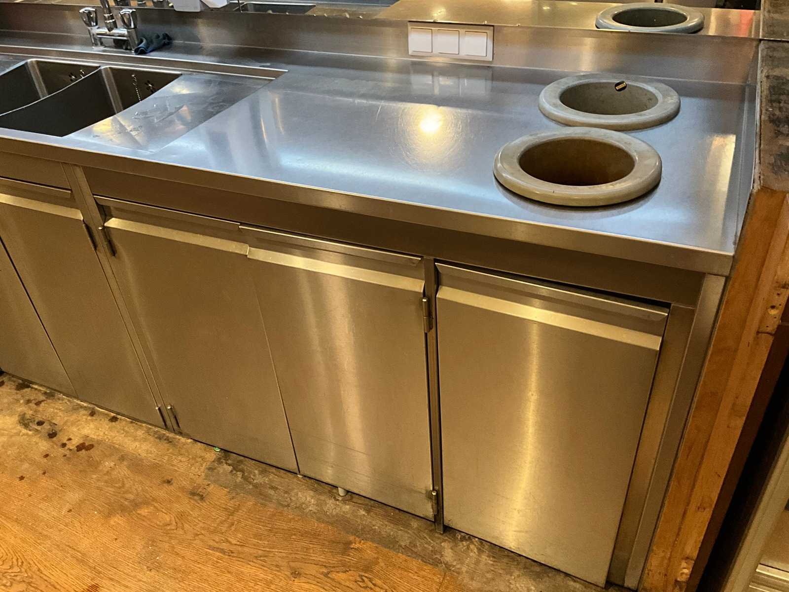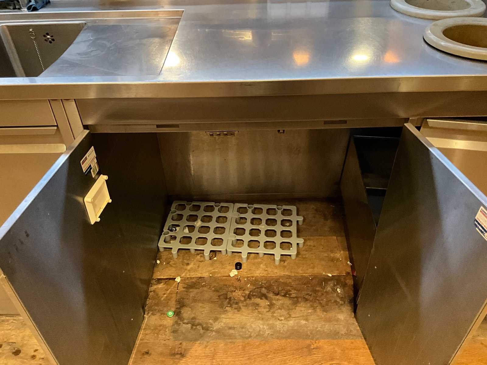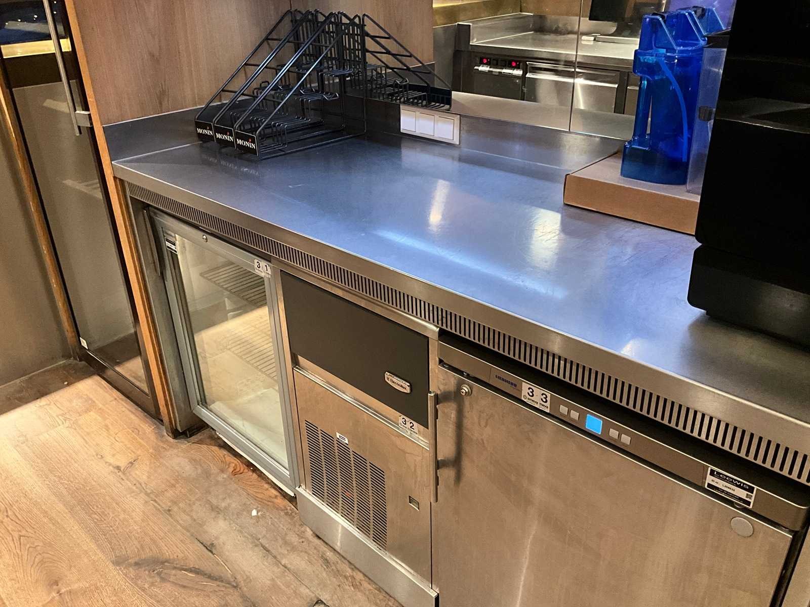 Bar achterwand met RVS spoel- en werktafel, v.v. close-in boiler. LET OP! De korvenvaatwasmachine, koffiemachine, ijsblokjesmachine, glasdeurkoeling, vriezer, wijnklimaatkast en inhoud behoren niet tot de kavel. LET OP! Deze kavel maakt onderdeel uit van een combinatie kavel (kavelnummer 1) deze kavel blijft onder gunning totdat de combinatie kavel gesloten is. De koper is zelf verantwoordelijk voor het professioneel demonteren van de kavel. Kavel kan aangesloten zijn op het elektra-, water- en/of gasleidingnetwerk. Bekabeling en/of leidingen dienen netjes afgedopt en ordelijk achter gelaten te worden. Schade aan het pand of andere zaken zal op de koper worden verhaald. Wij adviseren u gebruik te maken van de kijkdag om een plan voor demontage op te stellen. Totale afmeting L: 3600mm Totale afmeting Breedte: 700mm Totale afmeting Hoogte: 1850mm