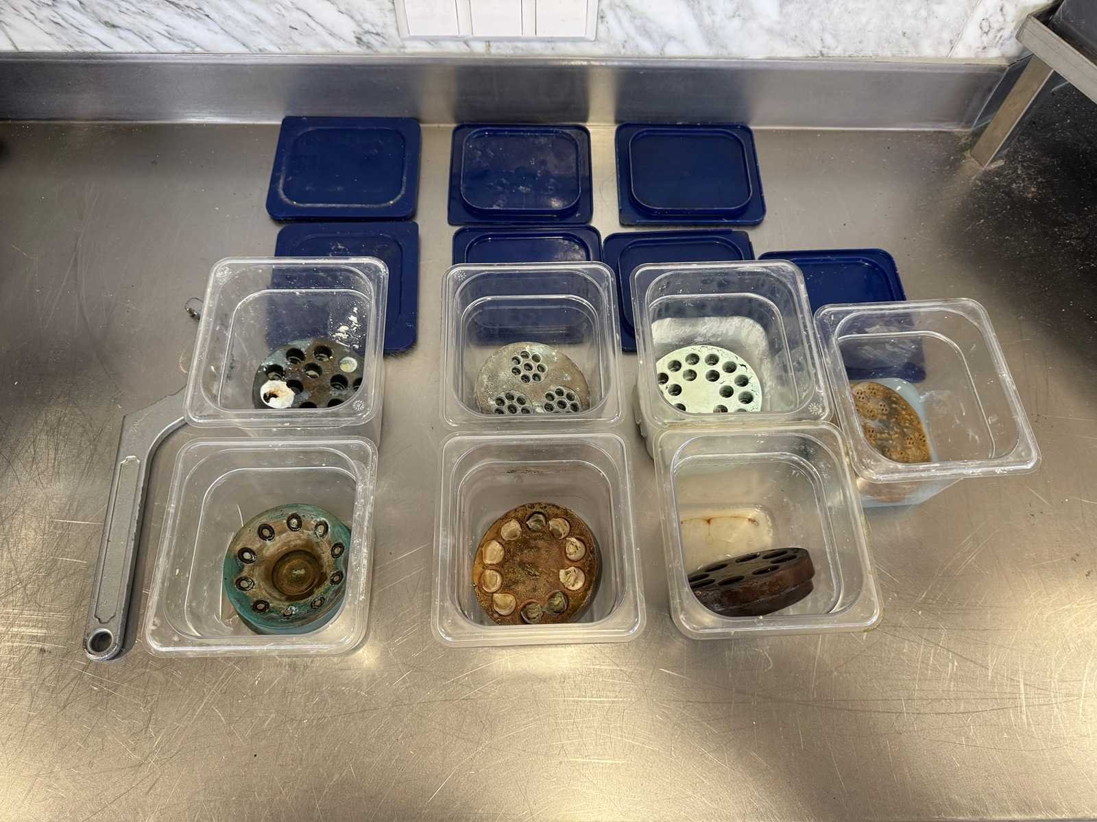 Incl. onderdelen, diverse snijkoppen en mallen, en kratten zoals op foto. Merk: Dominioni Model: P55R Lengte: 750mm Breedte: 950mm Hoogte: 1530mm
