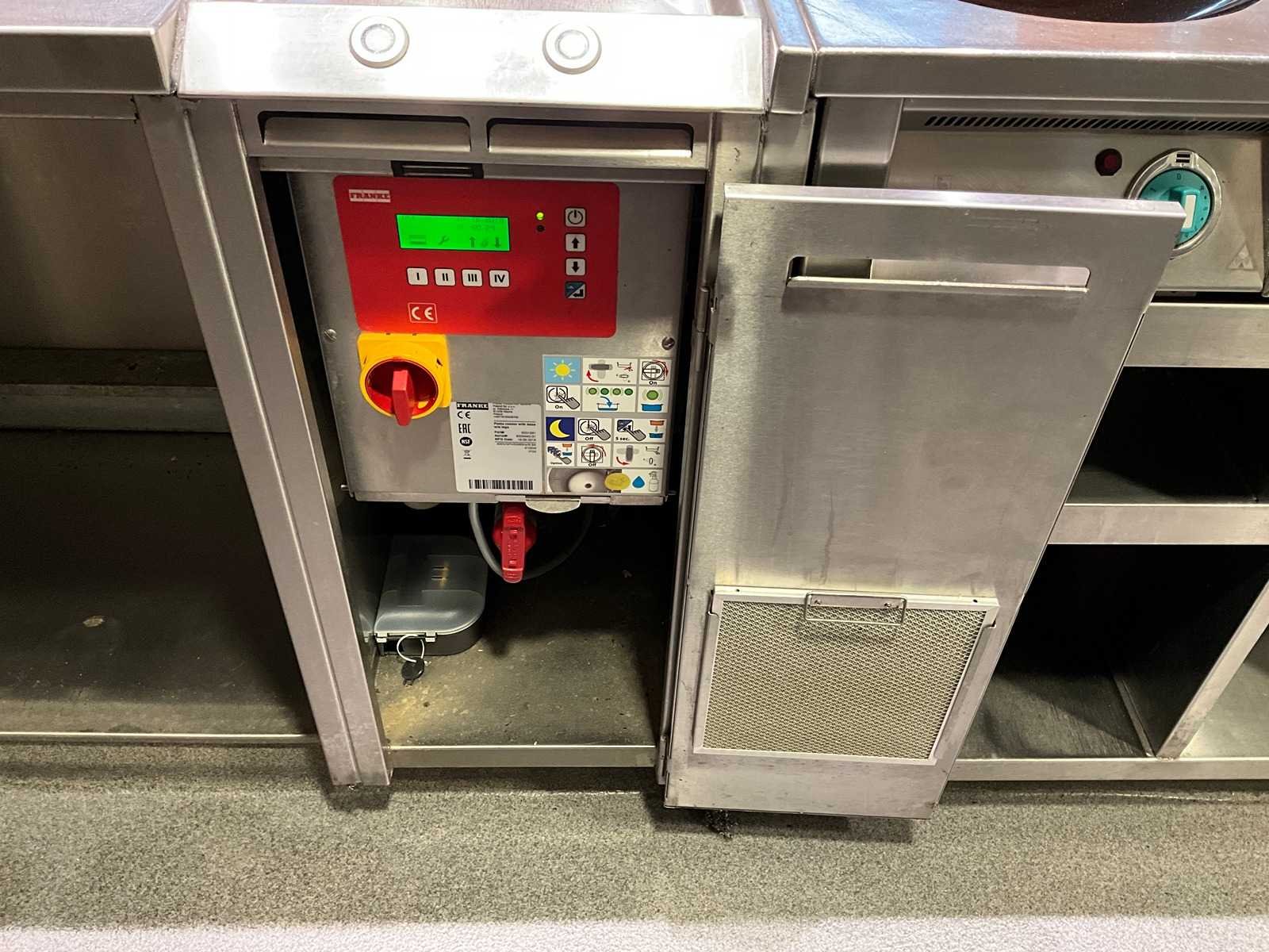 V.v. elektronisch liftsysteem. LET OP! Deze kavel maakt onderdeel uit van een combinatie kavel (kavel 25). De kavel blijft onder gunning totdat de combinatie kavel gesloten is. De koper is zelf verantwoordelijk voor het professioneel demonteren van de kavel. Kavel kan aangesloten zijn op het elektra-, water- en/of gasleidingnetwerk. Bekabeling en/of leidingen dienen netjes afgedopt en ordelijk achter gelaten te worden. Schade aan het pand of andere zaken zal op de koper worden verhaald. Wij adviseren u gebruik te maken van de kijkdag om een plan voor demontage op te stellen. Merk: Franke Model: Frontline Totale afmeting Breedte: 650mm Totale afmeting L: 350mm Totale afmeting Hoogte: 850mm