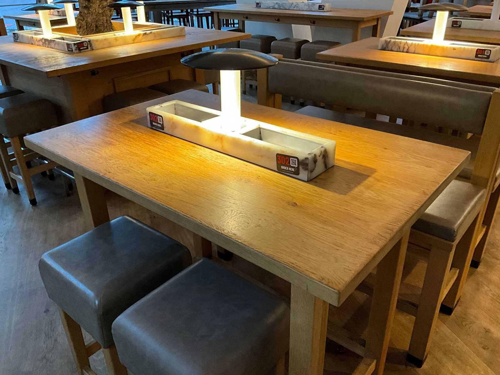 Bartafel met marmeren opbouw en verlichting. Afmeting bank: 125x50x112 cm, zithoogte 73 cm. Afmeting krukken 37x37x75 cm. De tafel is reeds ontkoppeld van de vloer en elektra. Hiervoor zijn de additionele kosten van toepassing. Merk: Hutten Totale afmeting L: 1250mm Totale afmeting Breedte: 800mm Totale afmeting Hoogte: 1050mm Hout: true