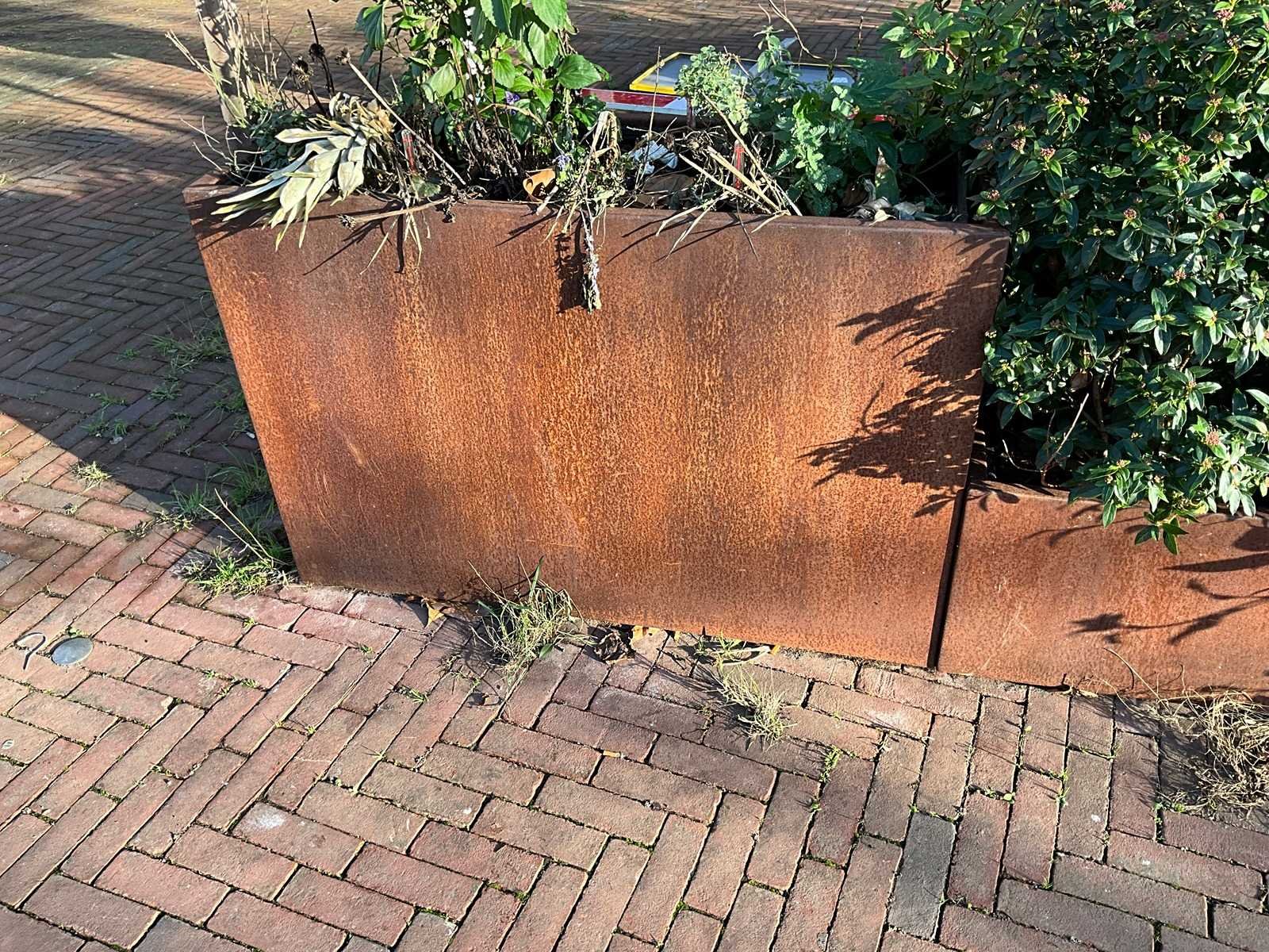 Metalen plantenbak v.v. 3 stuks Lechuza Cubico 40 binnenpot. 2x hoogte 80 cm. 1x hoogte 40 cm. Lengte: 120cm Breedte: 45cm