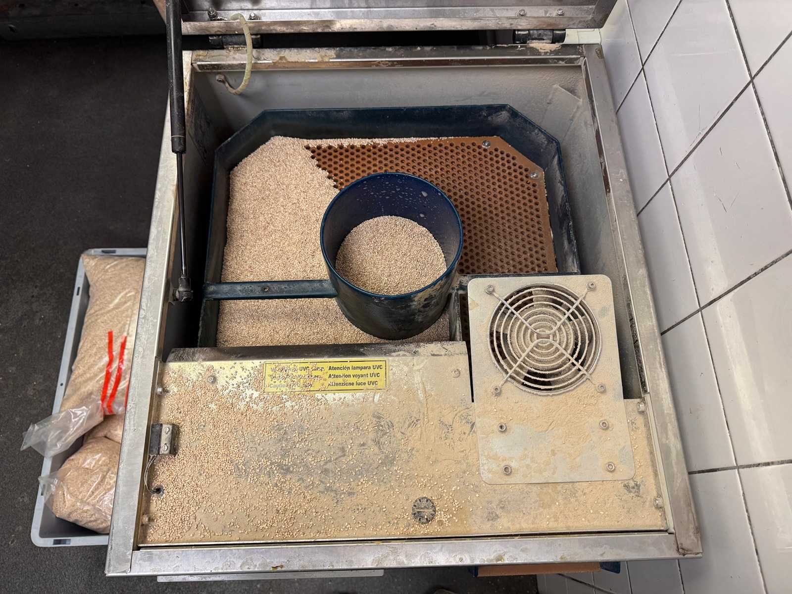 V.V. wielen en vulling voor machine. Merk: Thomas Dörr Type: BPM TD 5000 Aansluiting: 230V
