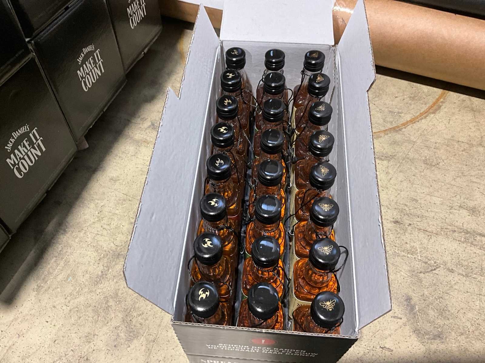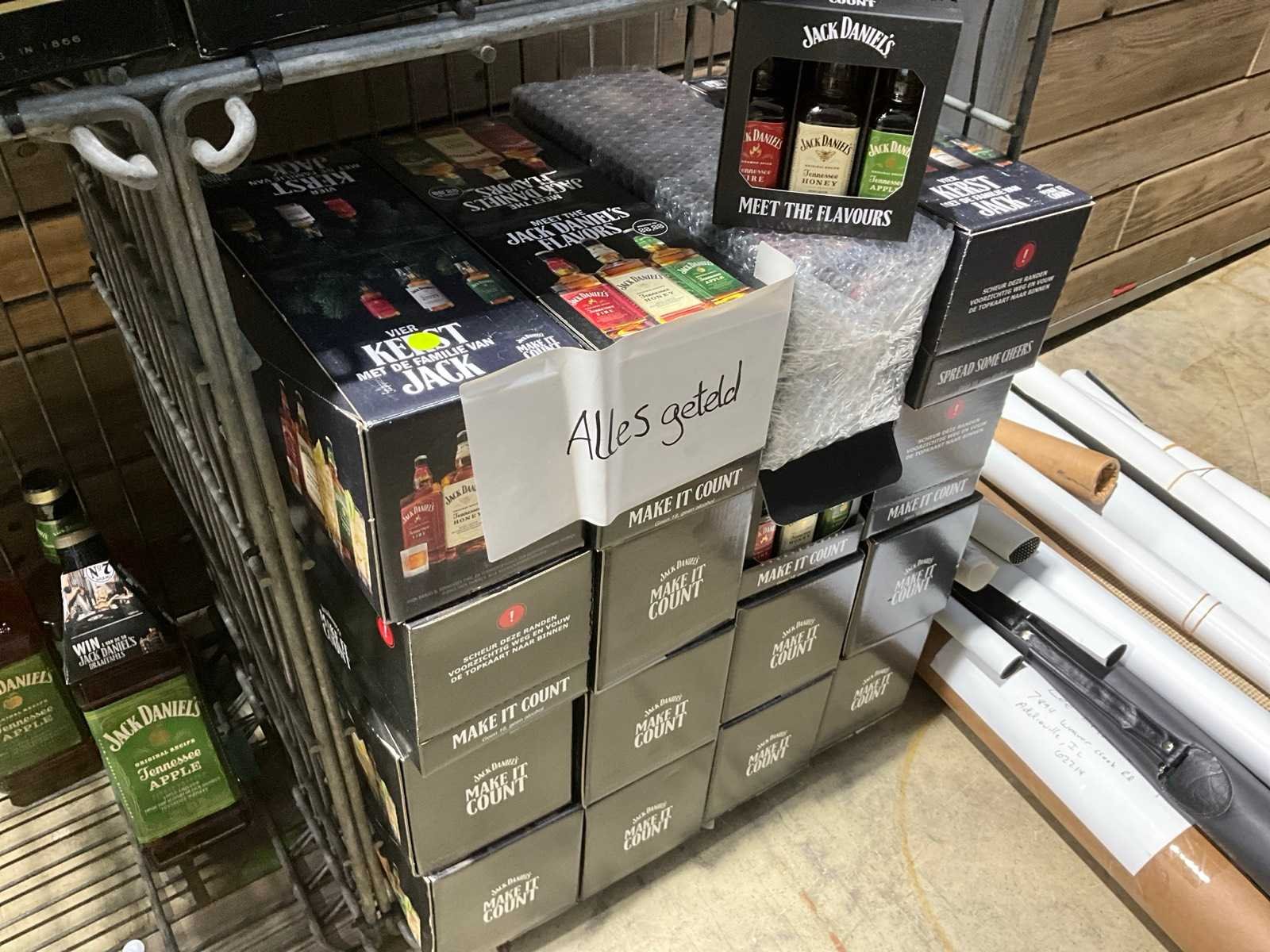 12x doos minifles 24 stuks divers, 5x Jack Daniels Apple, 9x draadmand