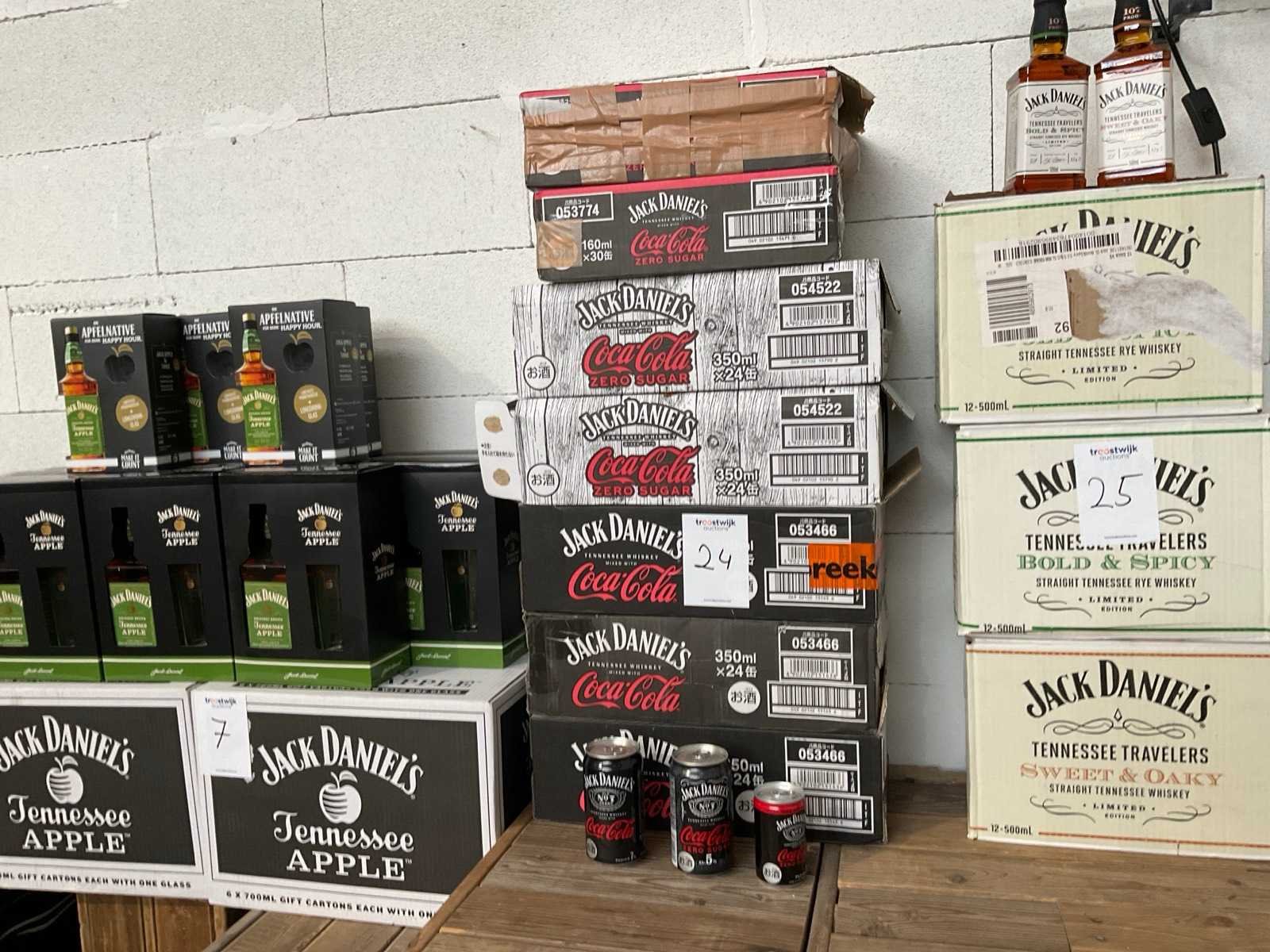 Bestaande uit: circa 40 blikjes 160 ml 7%, 45 blikjes 350 ml 5%, 70 blikjes 350 ml 7% mix. Sommige zijn display only ivm datum Merk: Jack Daniels