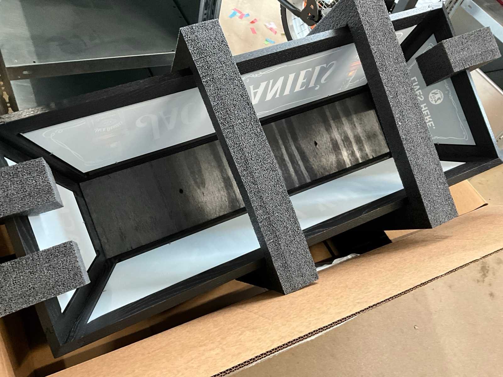 Hanglamp voor boven een pooltafel. Merk: Jack Daniels Lengte: 110cm Breedte: 45cm Hoogte: 30cm