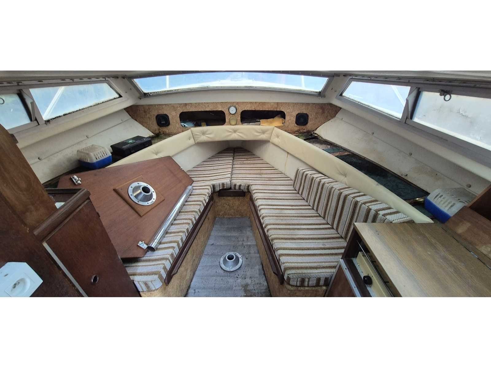 Marifoon Raymarine 54E, marifoon Shipmate, radar Raytheon (geen display), Quick elektrische ankerlier, kompas, zoeklicht. Motoraandrijving heckdrive. Let op: motor is defect dus loopt niet. De trailer is niet inbegrepen. Kijkdag op afspraak. Laden is mogelijk, kosten hiervan € 175,- Merk: Fairline Type: Weekender 24 Lengte: 7.2m Breedte: 2.59m Diepgang: 0.91m Bouwjaar: 1980 Rompmateriaal: polyester Stahoogte: 178cm Aantal hutten: 2 Aantal slaapplaatsen: 4 Aantal motoren: 1 Merk motor: Volvo Penta Vermogen (pk): 180hp Vermogen: 132kW Aantal cilinders: 8 Brandstof: benzine