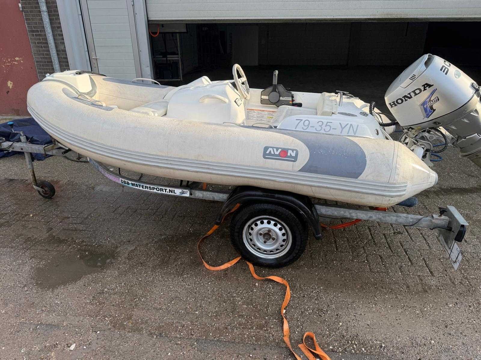 Honda 30 Pk, trim, elektrische start. Kussens, afdekzeil op maat. Geschikt voor personen Merk: Avon Type: SC320 Lengte over alles: 3.2m Breedte formaat: 1.7m Type motor: Honda Eigen gewicht: 250kg