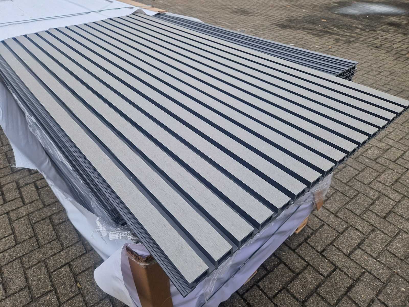 Kleur; antraciet/grijs, lange levensduur, 290 x 21.9 x 2.6 cm per paneel, werkende breedte 20 cm, ongebruikt Afmeting l: 2900mm Afmeting b: 219mm Afmeting h: 26mm