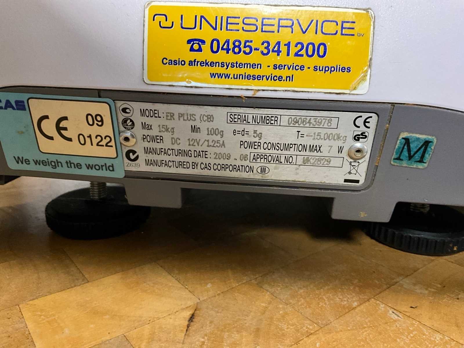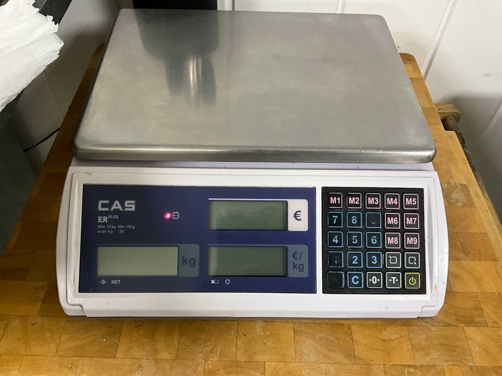 1X CAS, 2x Wagi Tarczyn Merk: CAS Type: ER plus Weegbereik min.: 100g Weegbereik max: 15000g Afleesnauwkeurigheid: 5g Aansluiting: 230V