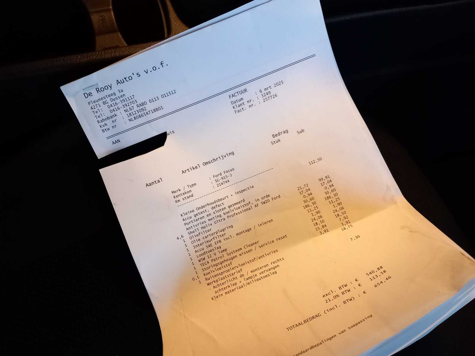 Kenteken: SG915J Merk: Ford Model: Focus Wagon Type: 1.0 Trend Bouwjaar: 2018 Afgelezen kilometerstand: 215205km Cilinderinhoud: 999cc Vermogen (kW): 74kW Brandstof: BENZINE Chassisnummer: WF06XXGCC6JS69763 NAP status: LOGISCH Datum eerste toelating: 2018-03-28 Datum eerste toelating (NL): 2018-03-28 APK vervaldatum: 2026-04-04 Vermogen (pk): 100hp Aantal zitplaatsen: 5 Kleur: zwart Emissieklasse: 6 Aantal deuren: 4 Aantal sleutels: 2 Ledig gewicht: 1213kg Bruto BPM (NL): 3606€ Aantal cilinders: 3 Carrosserie: stationwagen Nationaliteit documenten: NL Carfax Link: https://was.carfax.eu/v0/api/ccdid/5100016408/svc/201/vinreg/SG915J/checksum/eyJhbGciOiJIUzI1NiIsInR5cCI6IkpXVCJ9.eyJleHAiOjE3NzE3MDA5MDR9.9zw4ZAhnrWolnttYxu2oPUxaqvSFcV6Xp4mwDDQTSrY Start en rijdt: GOED Airconditioning: true