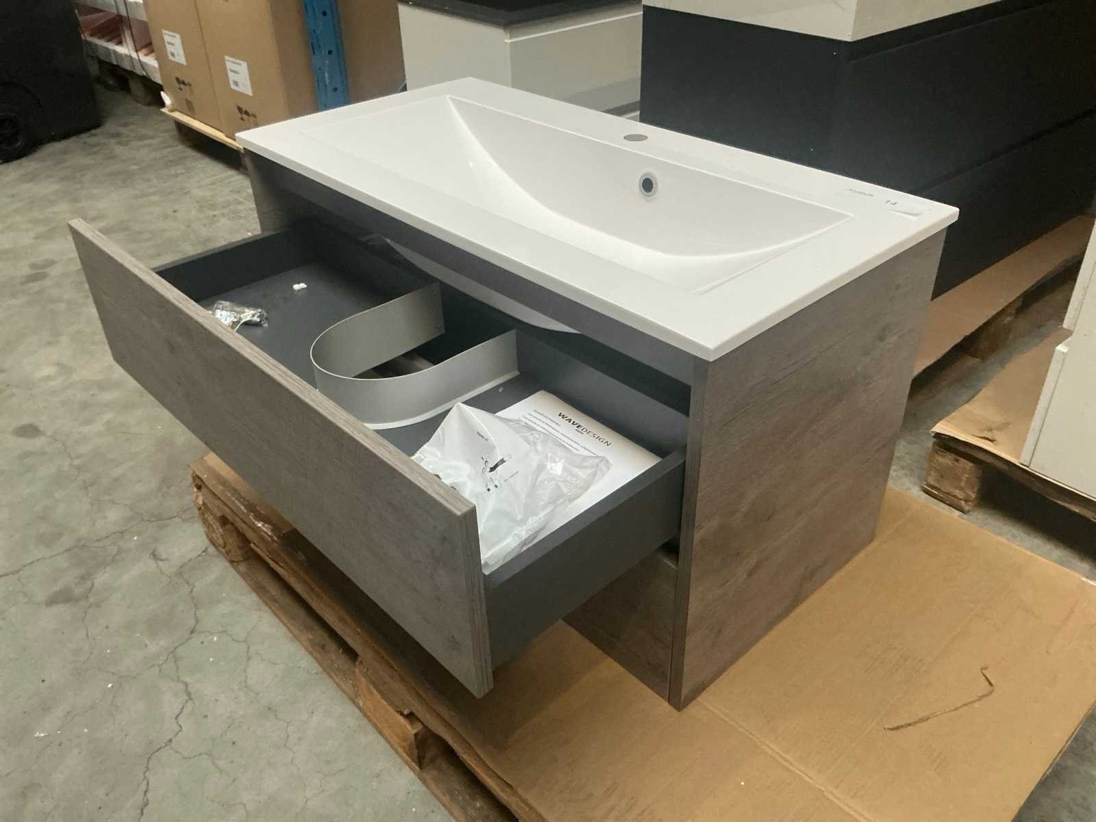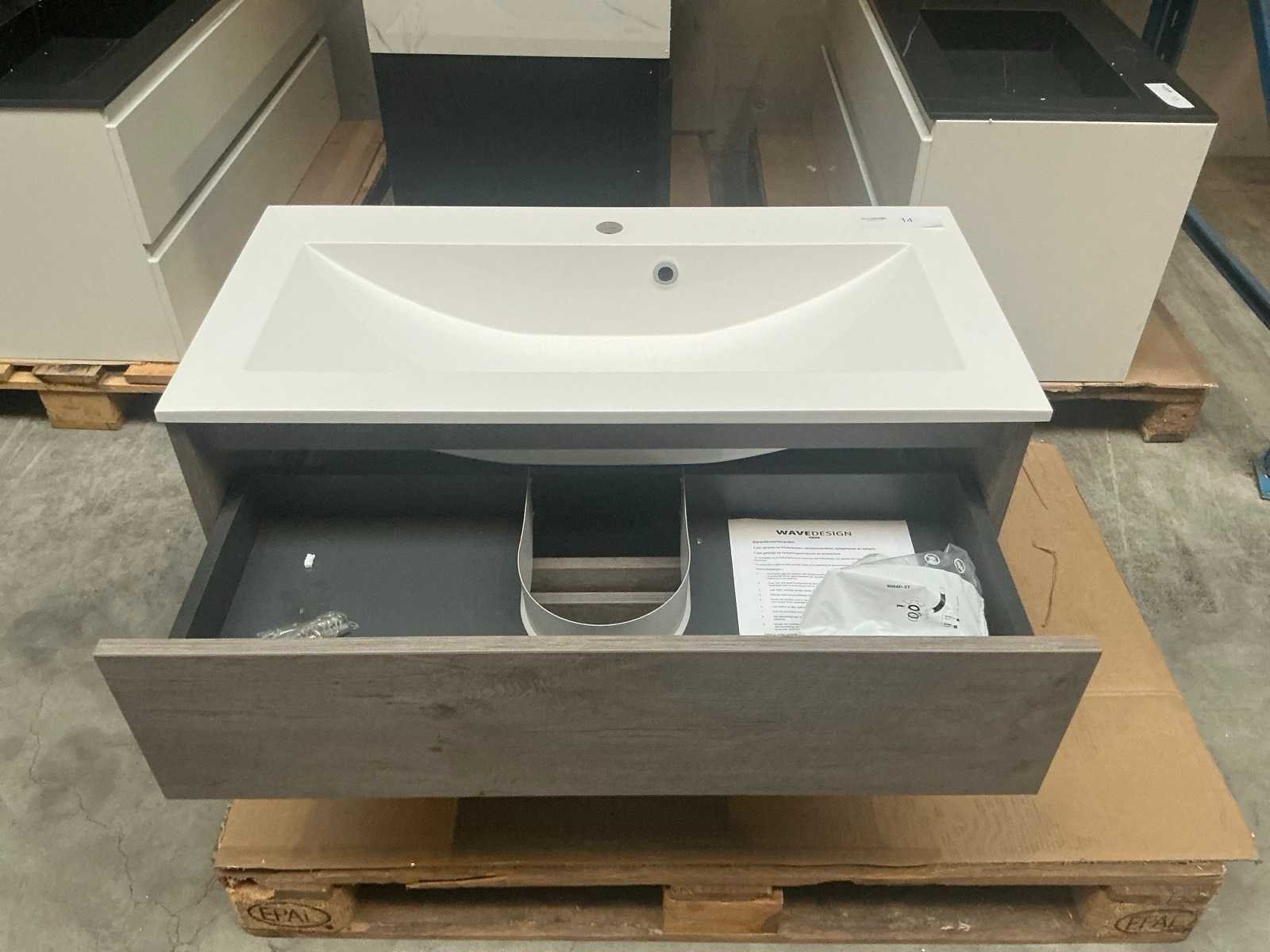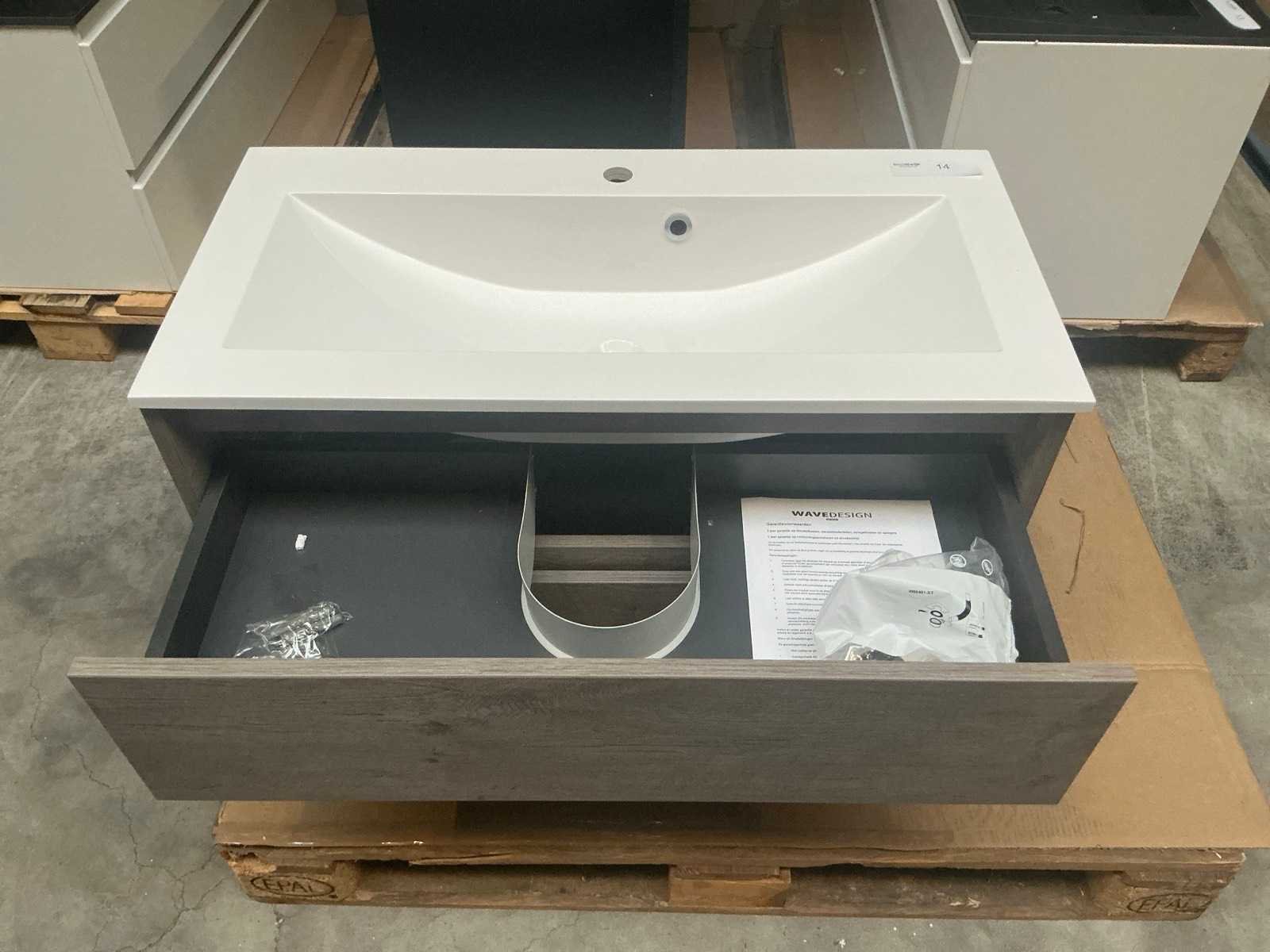 Merk: Wisa Model: Wavedesign Hoogte: 52cm Breedte: 90cm Waskom: Wit composiet Lades: 2 Softclose: true