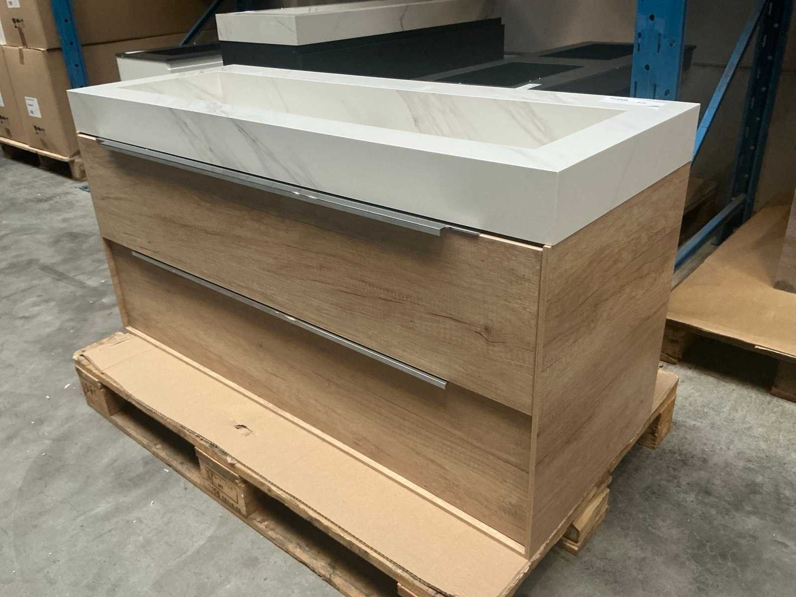 Merk: Wisa Model: Cassino base Nebraska Hoogte: 60cm Breedte: 120cm Kleur: Natural Oak Lades: 2 Softclose: true