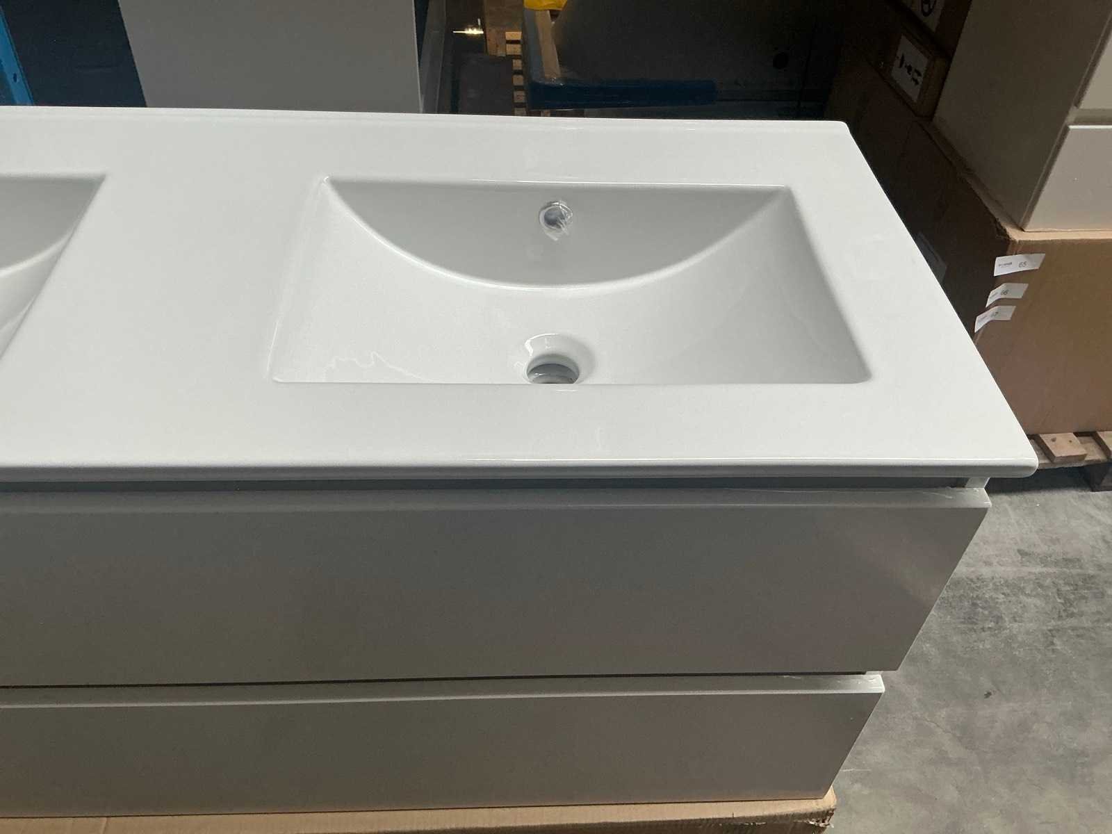 Merk: Wisa Model: Lucido Hoogte: 52cm Breedte: 120cm Kleur: Wit hoogglans Wastafel: Keramisch Lades: 2 Softclose: true