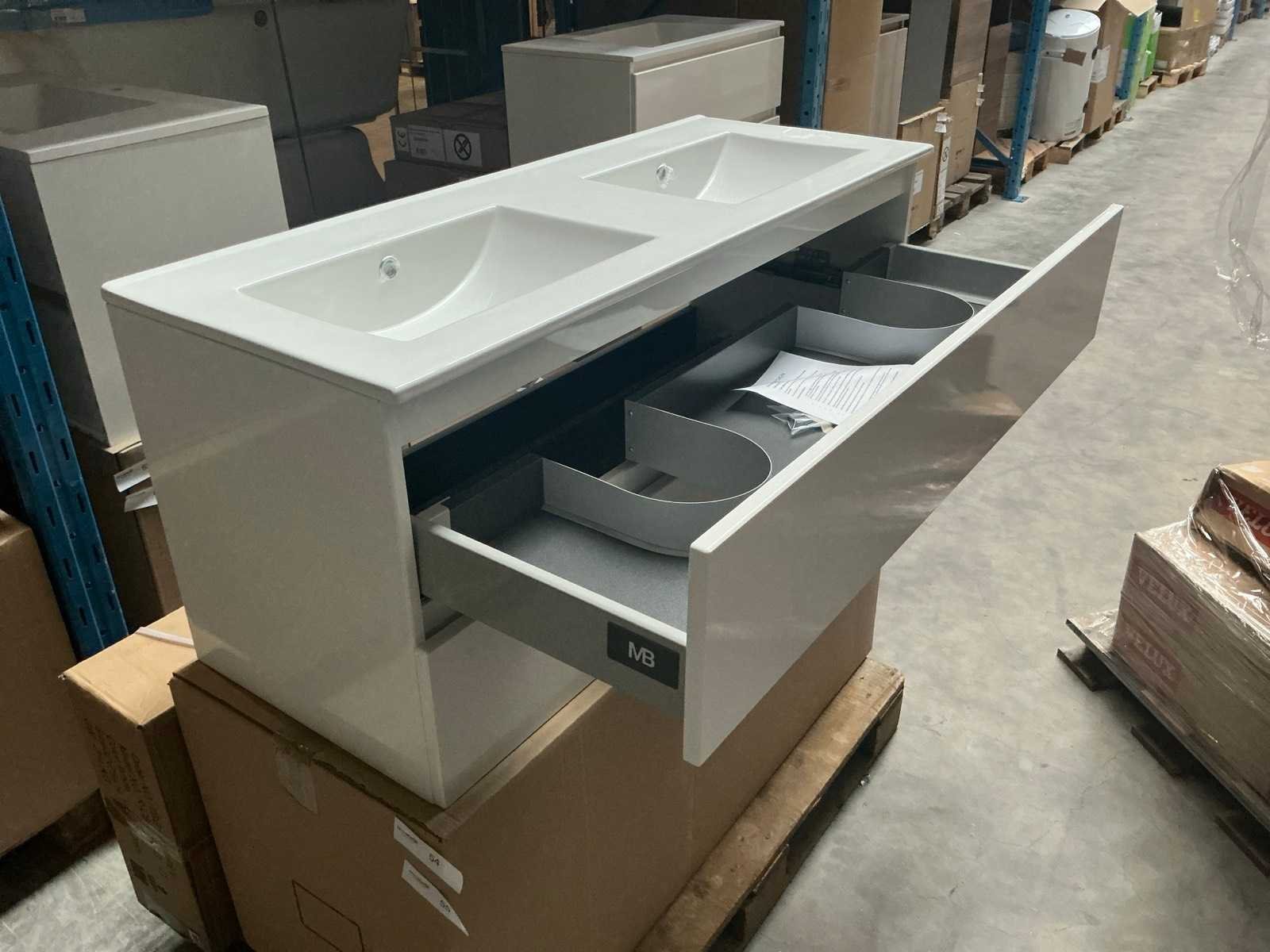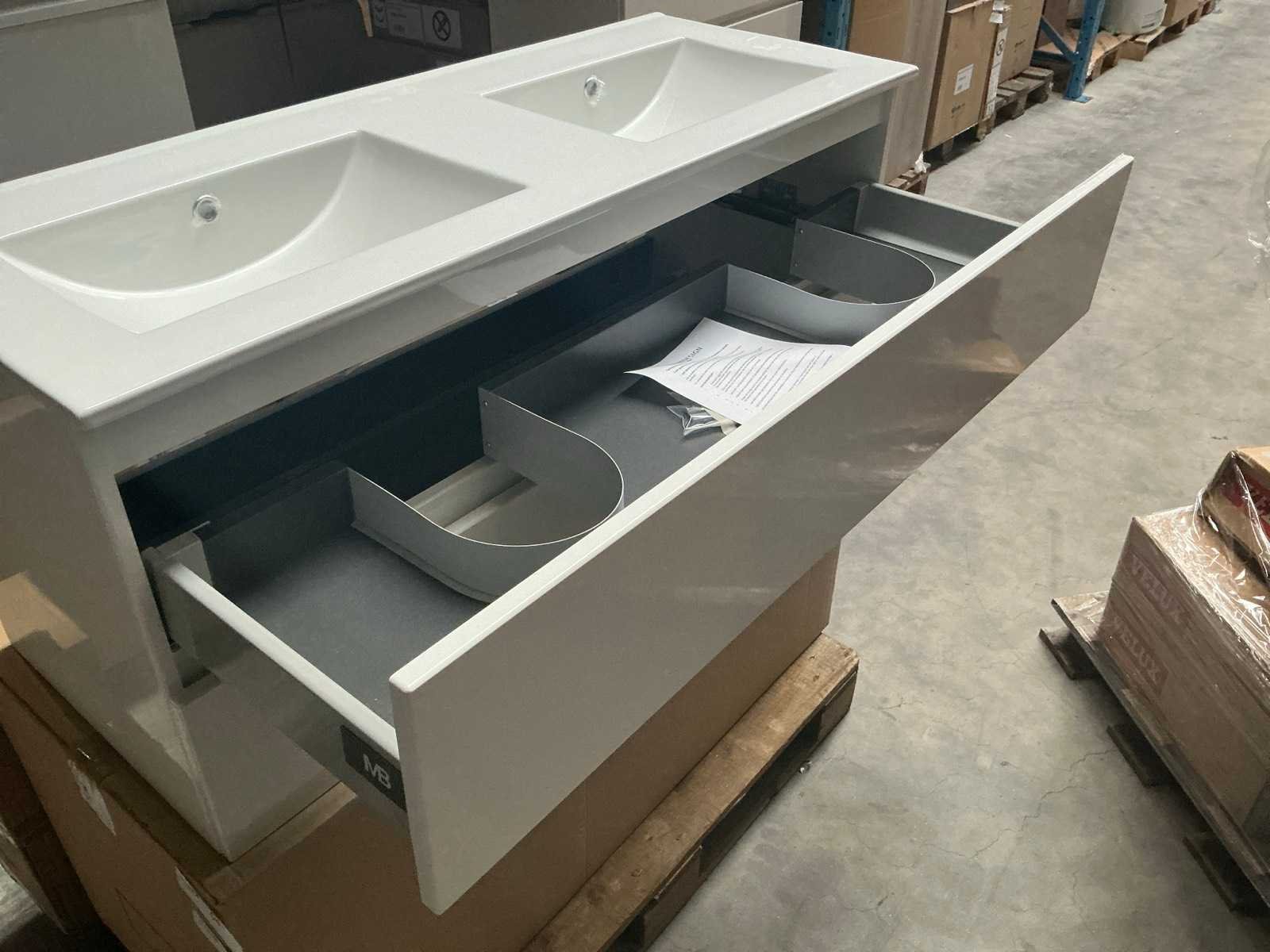 Merk: Wisa Model: Lucido Hoogte: 52cm Breedte: 120cm Kleur: Wit hoogglans Wastafel: Keramisch Lades: 2 Softclose: true