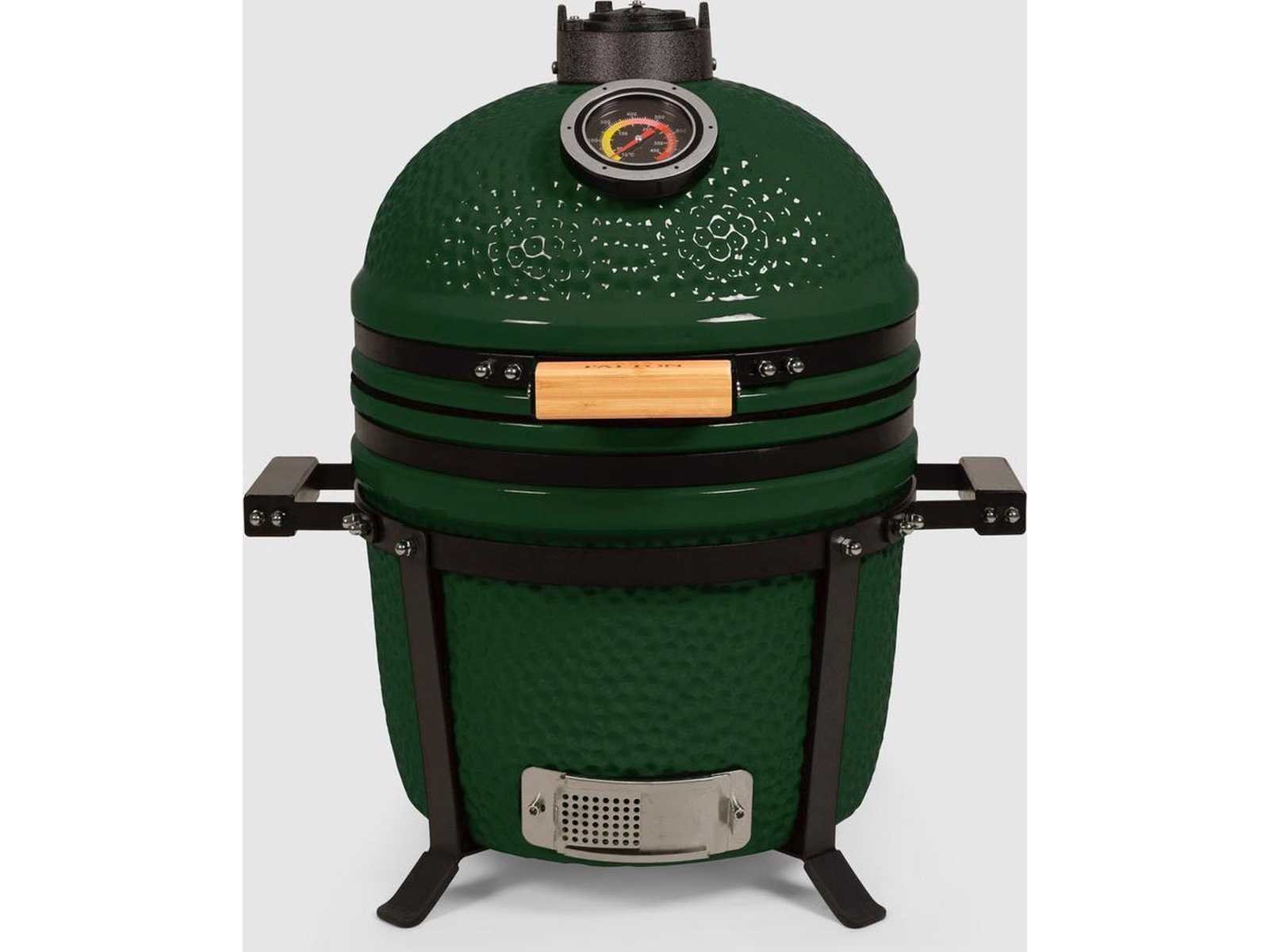 Kenmerken: • Kleur: groen • Uitvoering 15”; Diameter grilloppervlak 34 cm. • Hoogwaardig geglazuurd industrieel keramiek, welke bestand is tot temperaturen van zo’n 1.000 graden Celsius. • Dankzij de keramische schaal en gecontroleerde luchtstroom wordt het vlees of ander gerecht sappiger en malser dan in welke andere stalen barbecue ook ! • Vanwege het ventilatierooster aan de onderzijde i.c.m. met de zgn. margrietschijf aan de bovenzijde is de temperatuur uitermate goed te controleren en in te regelen. • 15” uitvoering standaard uitgevoerd met degelijk onderstel • Middels de temperatuur meter op het deksel is de temperatuur goed te volgen Merk: Patton Model: 15 inch groen (55CCe207) Kleur: groen Materiaal: keramiek