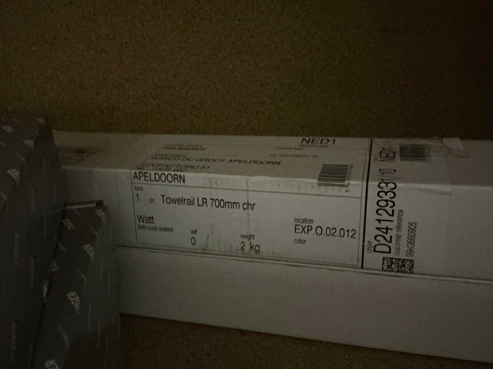 Bestaande uit: thermostaat, Zehnder filter, 3x LED verlichting, douche mand, handdoekrails