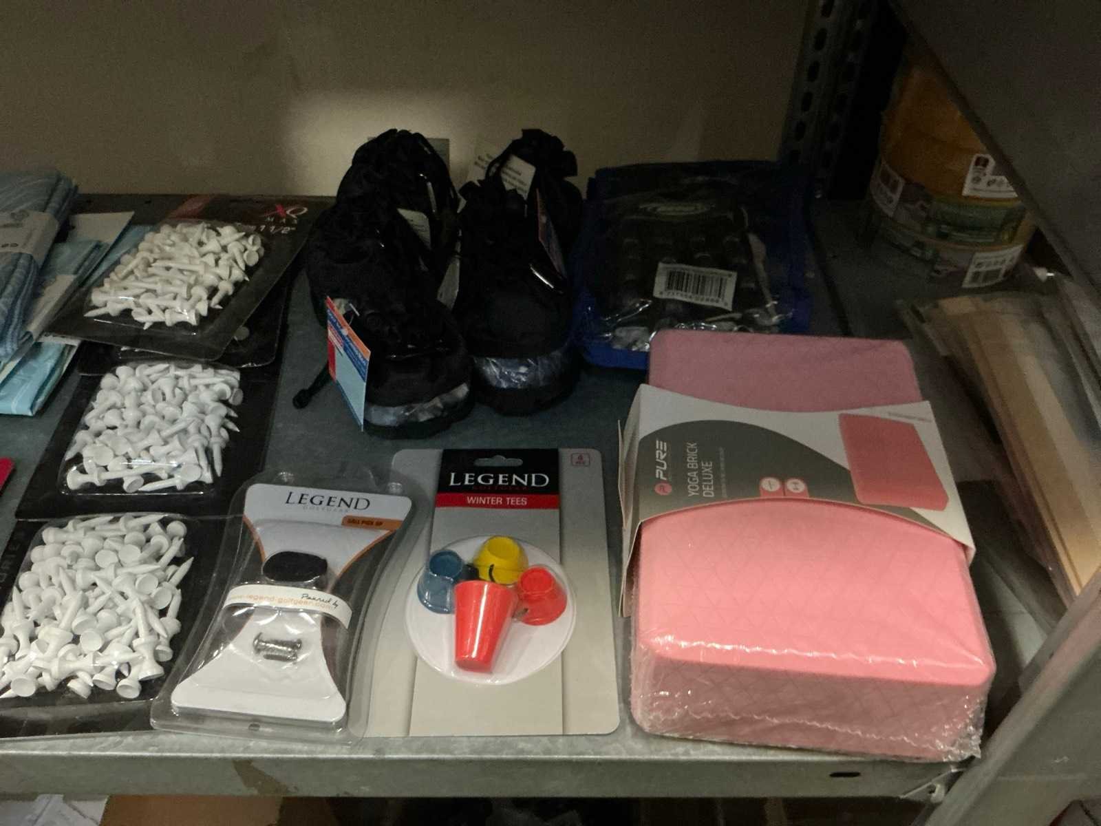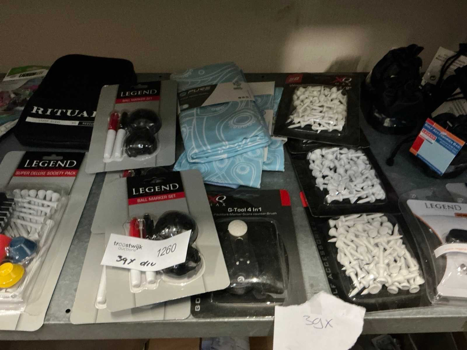Bestaande uit: golfbenodigdheden, prikkers, broodtrommel, yoga handdoeken, etc,