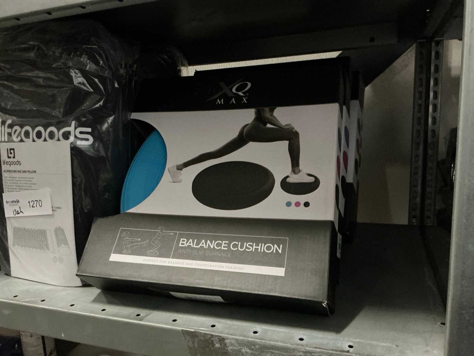 Bestaande uit: gewicht, 2x acupressuurmat en kussen, 5x balanskussen, thermo shirt en broek en haken.