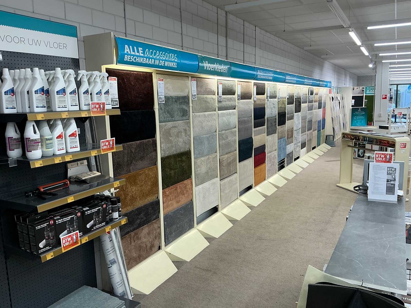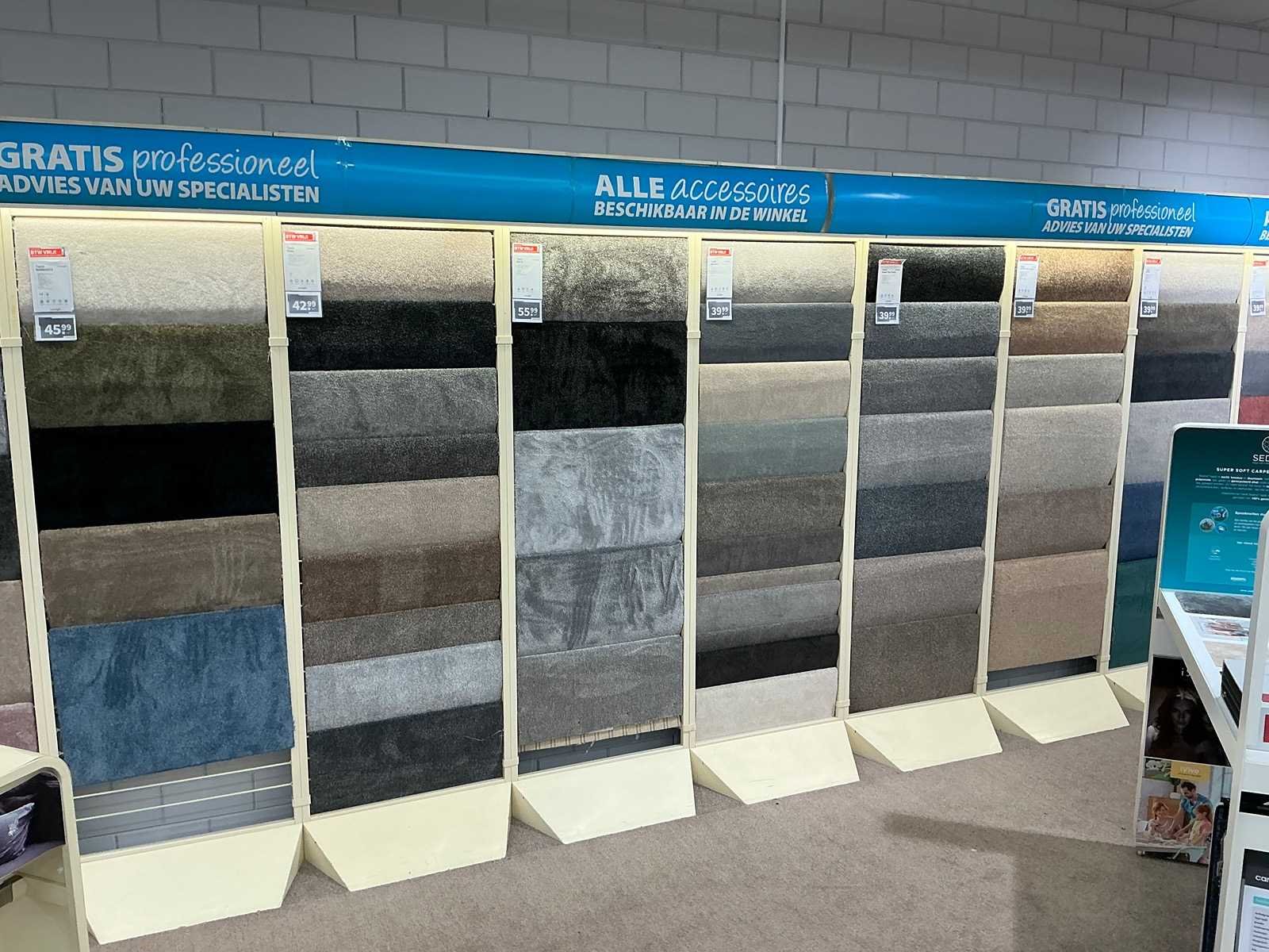 Winkelstelling met tapijt samples