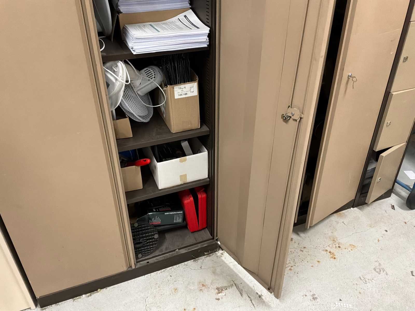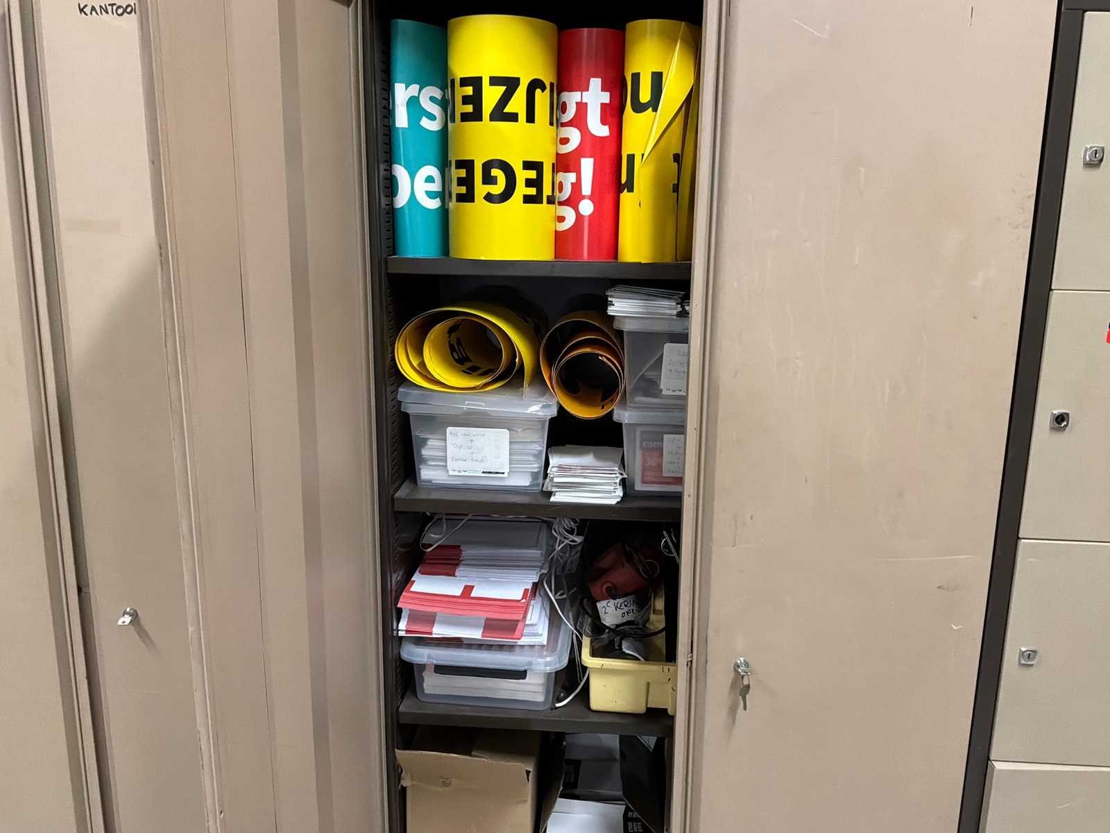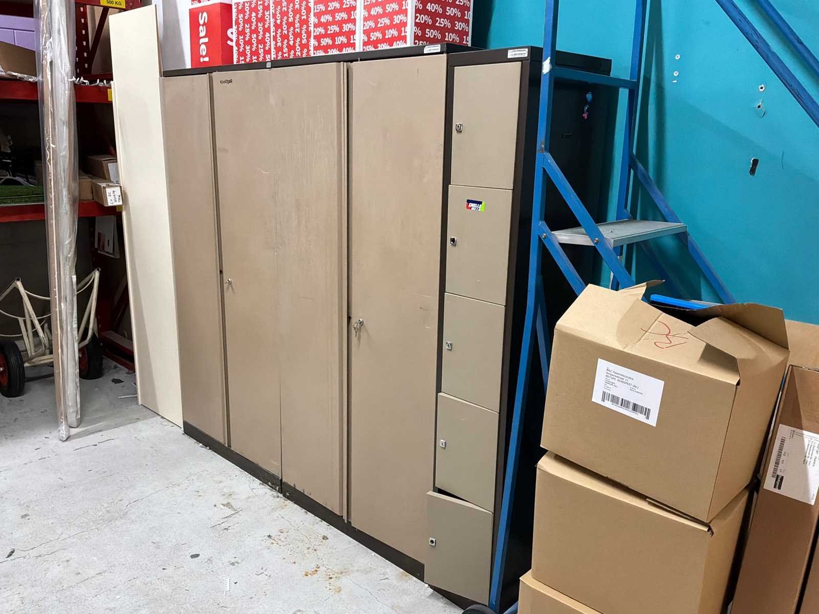 Kavel is exclusief inhoud. 2 Dossierkasten en 1 Lockerkast Lengte: 50cm Breedte: 90cm Hoogte: 200cm