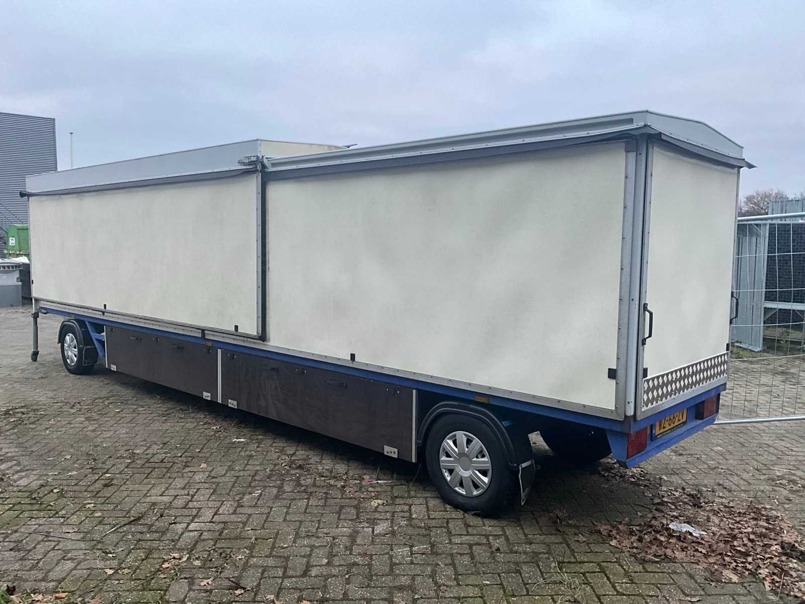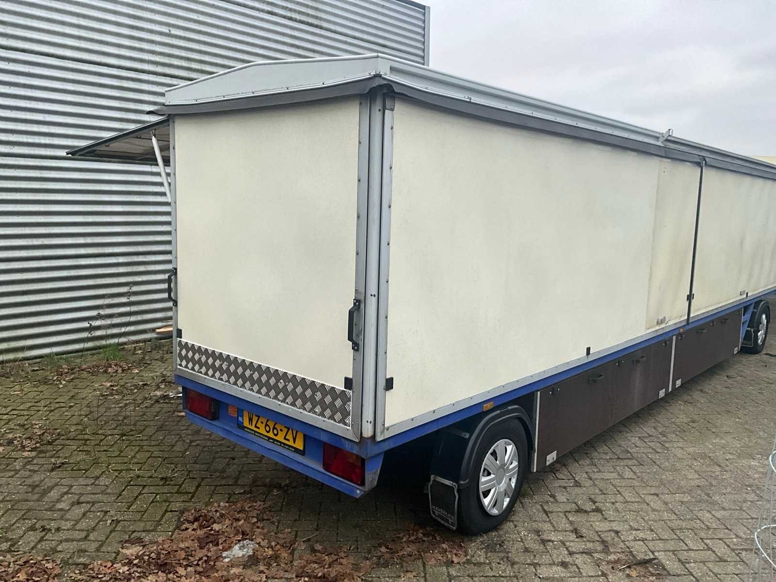 Haverkate verkoppwagen, uitgeschoven bedraagt de totale lengte 1290cm, voorzien van verlichting en stroomaansluitingen, aan beide zijde voorzien van 3 luifels, hoogte van de luifels 200cm, inclusief zeilen en aankleding. voorzien van 2 kisten over de hele lengte aan beide kanten toegankelijk. Ingericht op kledingverkoop. Merk: Haverkate Bouwjaar: 2001 Chassisnummer: XL9HA350001071001 Chassisnummer niet afleesbaar: true Aantal assen: 2 Ledig gewicht: 2050kg Laadvermogen: 1450kg Gesloten opbouw: true Datum eerste toelating: 2001-03-26 Datum eerste toelating (NL): 2001-03-26 Kenteken: WZ-66-ZV Kentekenpapieren compleet?: true Hoogte: 243cm Lengte: 920cm Breedte: 163cm Nationaliteit documenten: NL Zelf rijdend exporteren: Mogelijk
