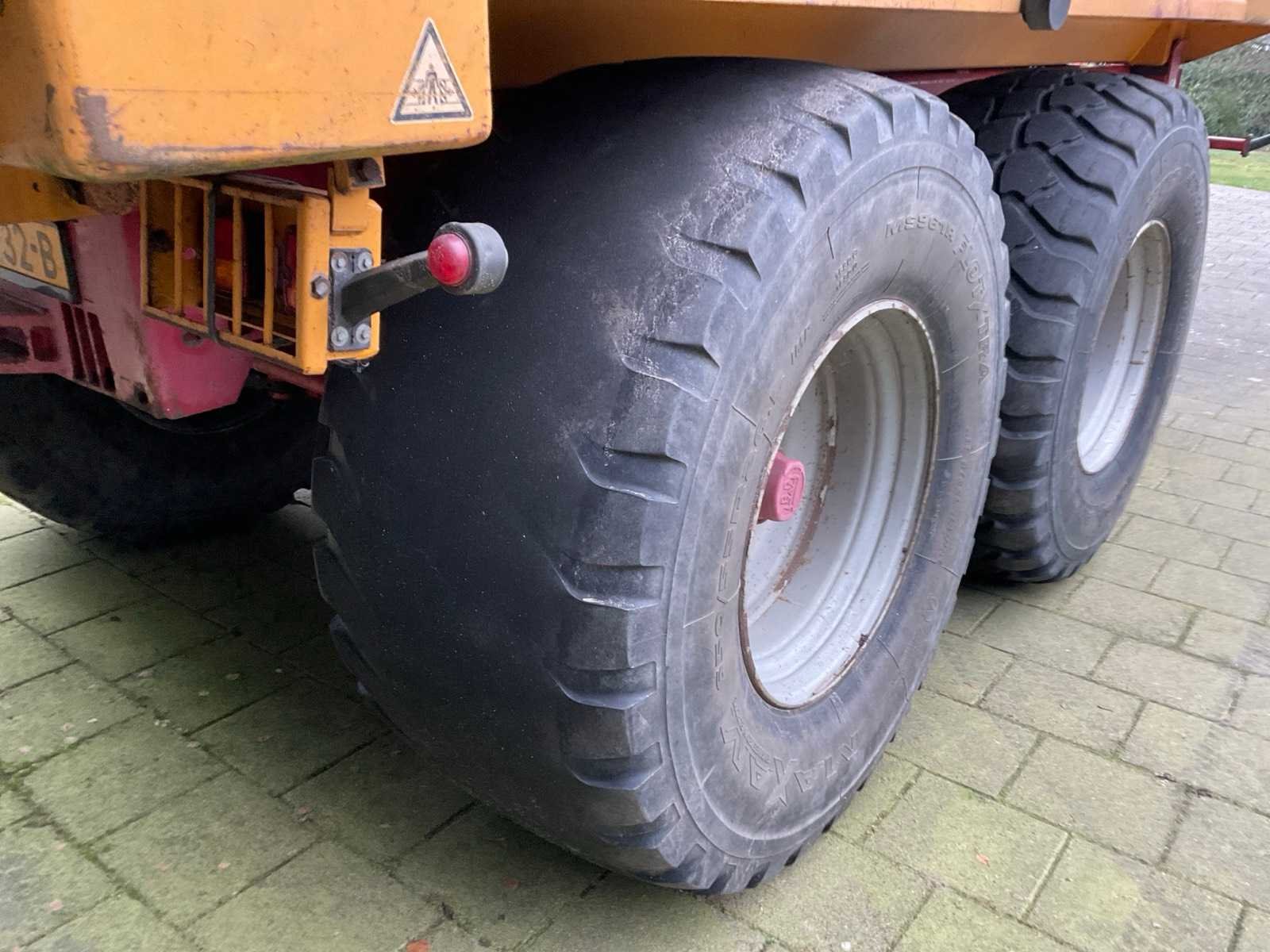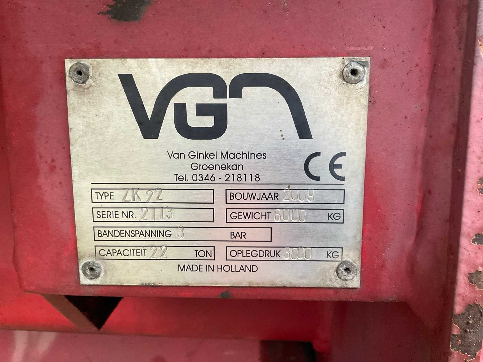 Gedwongen gestuurd, hydraulische losklep, hydraulisch afdeksysteem, hydraulische steunpoot, laadbak van Hardox staal. Merk: VGM Type: ZK22 Bouwjaar: 2009 Serienummer: 2113 Kenteken: LKR-32-B Opslag cap.: 11.5m³ Aantal assen: 2 Bandenmaat: 650/55R26.5 Totaal max. gewicht: 22t Max. snelheid: 40km/h Afdeksysteem: true Hydraulische remmen: true Stuuras: true Eigen gewicht: 6000kg Totale afmeting L: 7000mm Totale afmeting Breedte: 2600mm Totale afmeting Hoogte: 3000mm