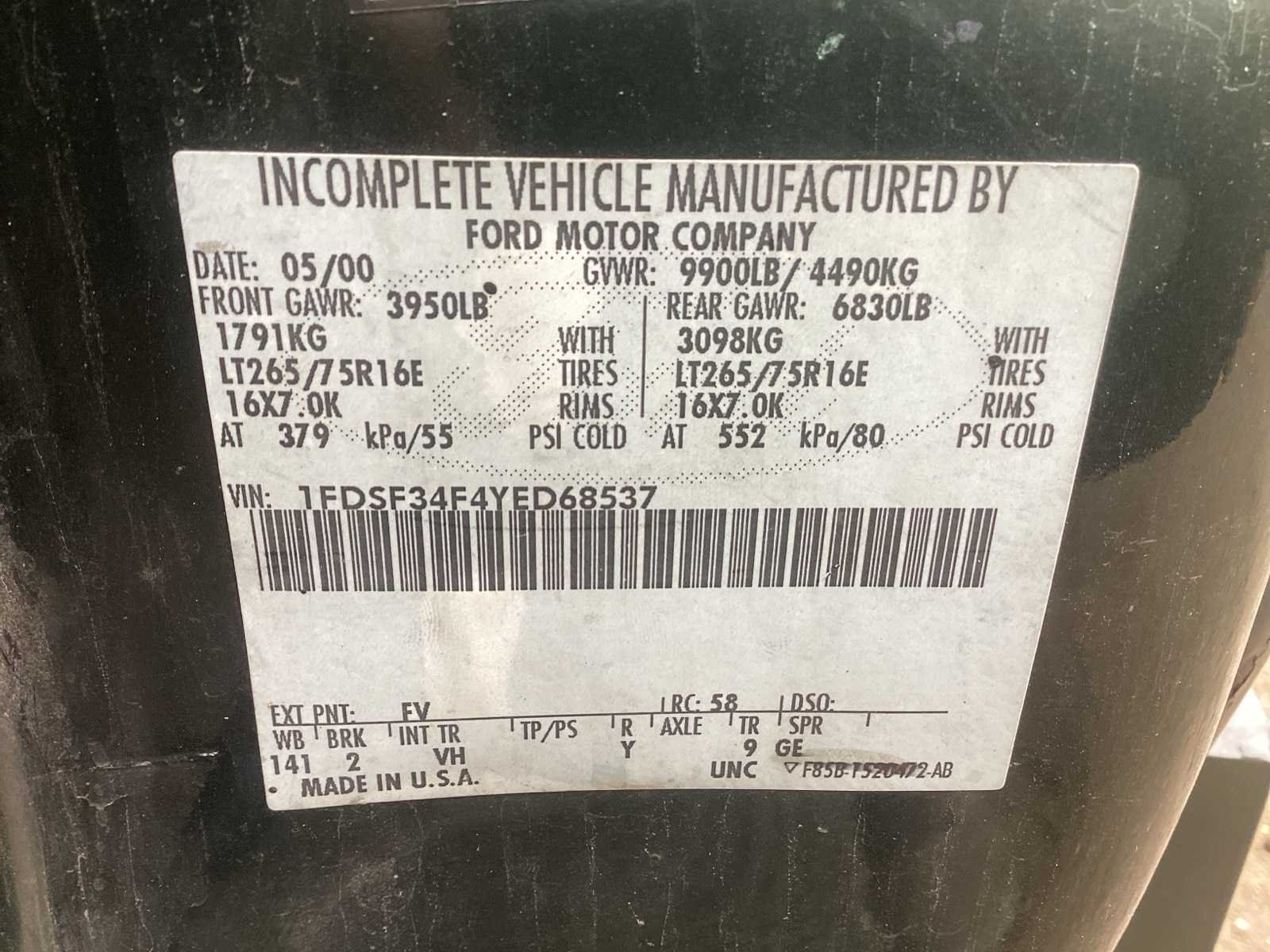 Aandrijfas licht beschadigd; Merk: Ford Type: F 350 Bouwjaar: 2000 Chassisnummer: 1FDSF34F4YED68537 Brandstof: Diesel Afgelezen mijlenstand: 4101mi Aandrijving: 4x2 Transmissie: Automaat Aantal zitplaatsen: 3 Aantal deuren: 2 Aantal sleutels: 1 Aantal cilinders: 8 Startinformatie: Start niet No self drive export!: true