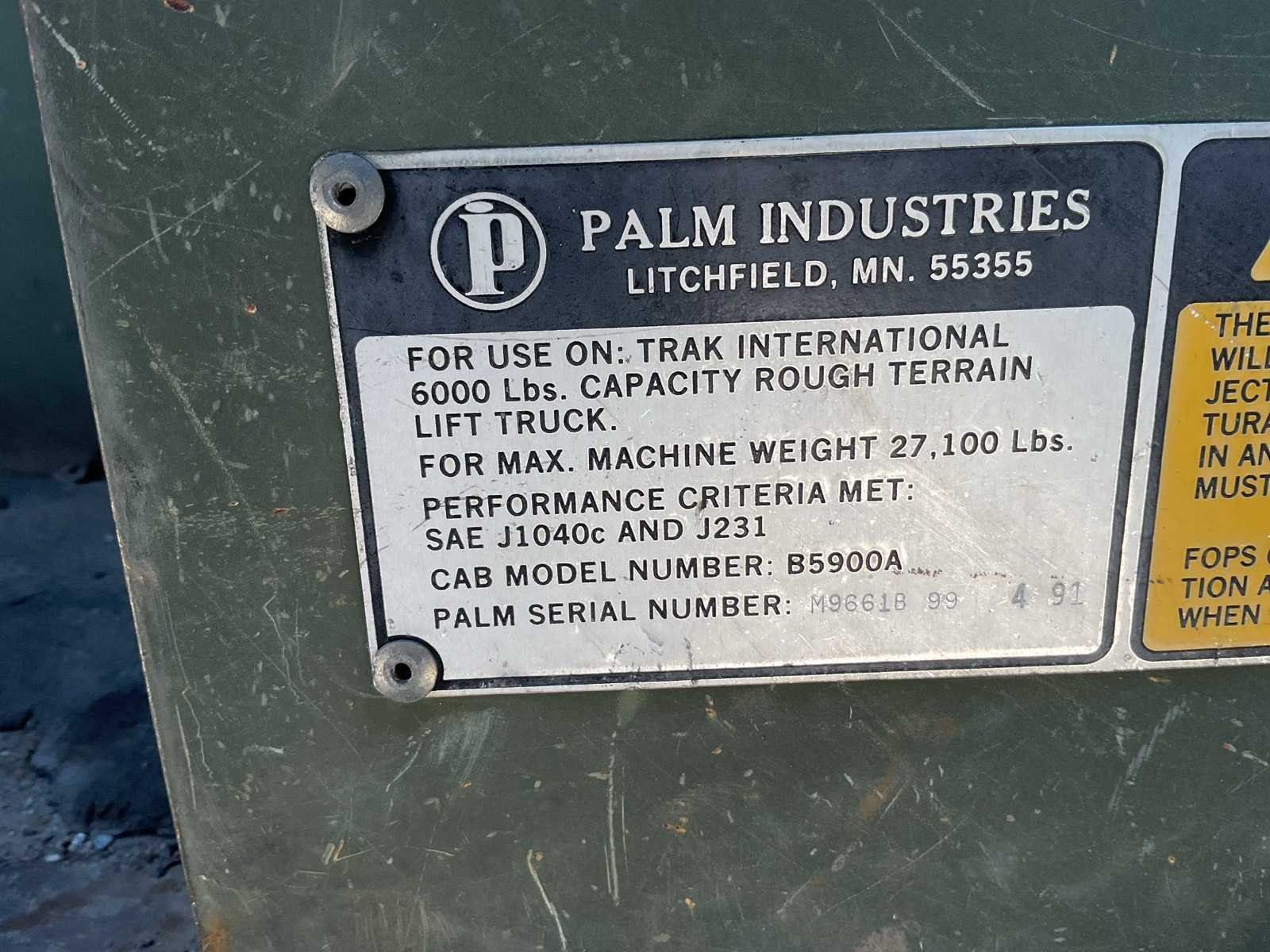 Cummins dieselmotor; 6 cilinder; kantel cilinder lekt Merk: Skytrack Type: 6000M Bouwjaar: 1991 Serienummer: 600M1E0930 Hefvermogen: 2722kg Cabine: true Vierwielaandrijving 4x4: true Luchtbanden: true Afgelezen urenstand: 2122
