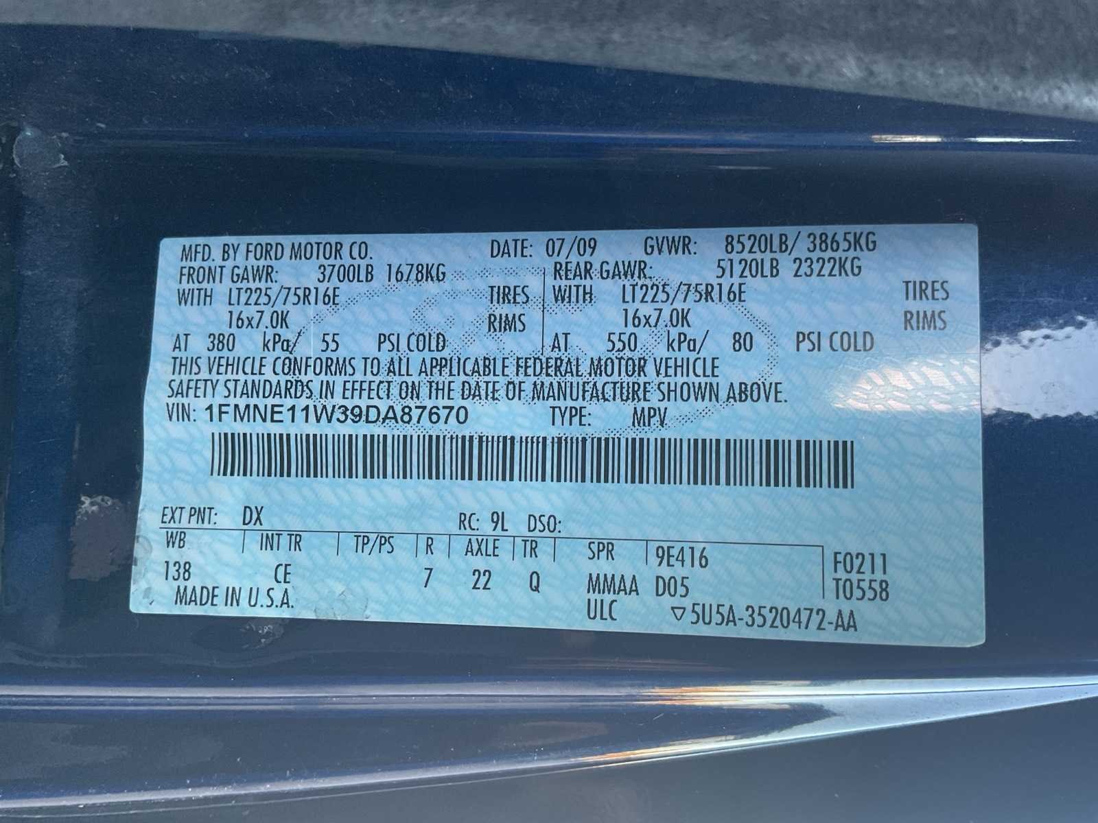 Aandrijfas licht beschadigd Merk: Ford Type: Van Model: E-150 XL Bouwjaar: 2009 Chassisnummer: 1FMNE11W39DA87670 Brandstof: benzine Afgelezen mijlenstand: 112355mi Aandrijving: 4x2 Transmissie: Automaat Aantal zitplaatsen: 8 Aantal deuren: 6 Aantal sleutels: 2 Aantal cilinders: 6 Onderhoudshistorie: Nee Startinformatie: Met hulp No self drive export!: true