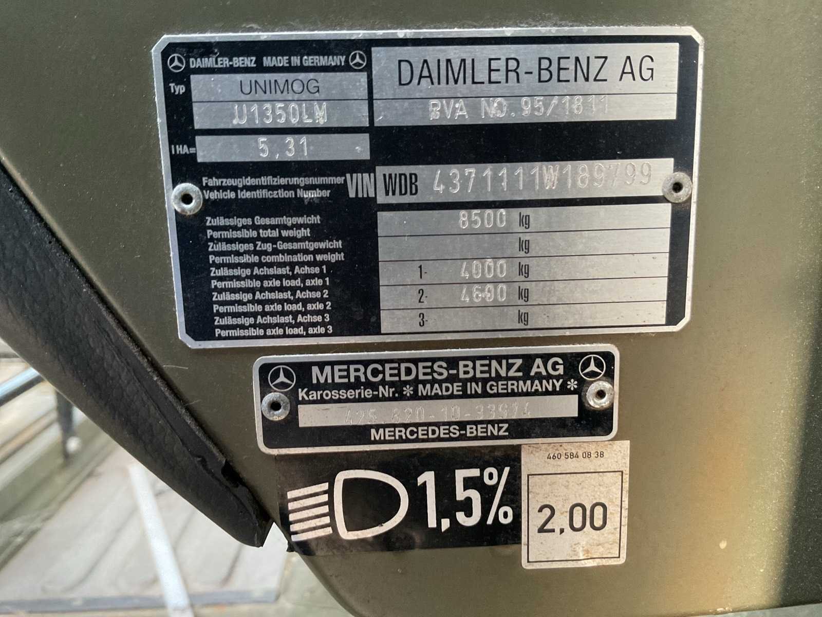 Merk: Unimog Type: U 1350 LM Chassisnummer VIN: WDB4371111W189799 Aantal assen: 2 Asconfiguratie: 4x4 Diesel: true