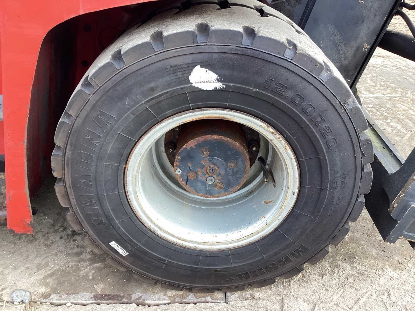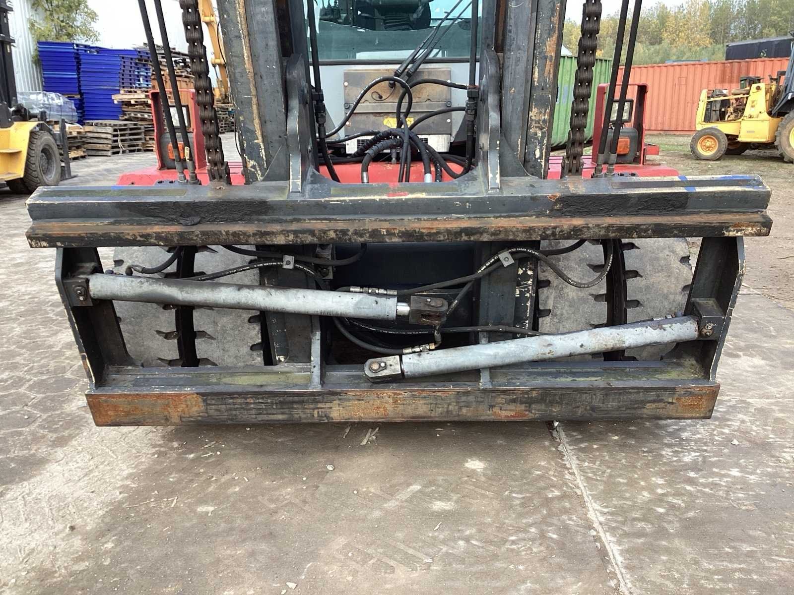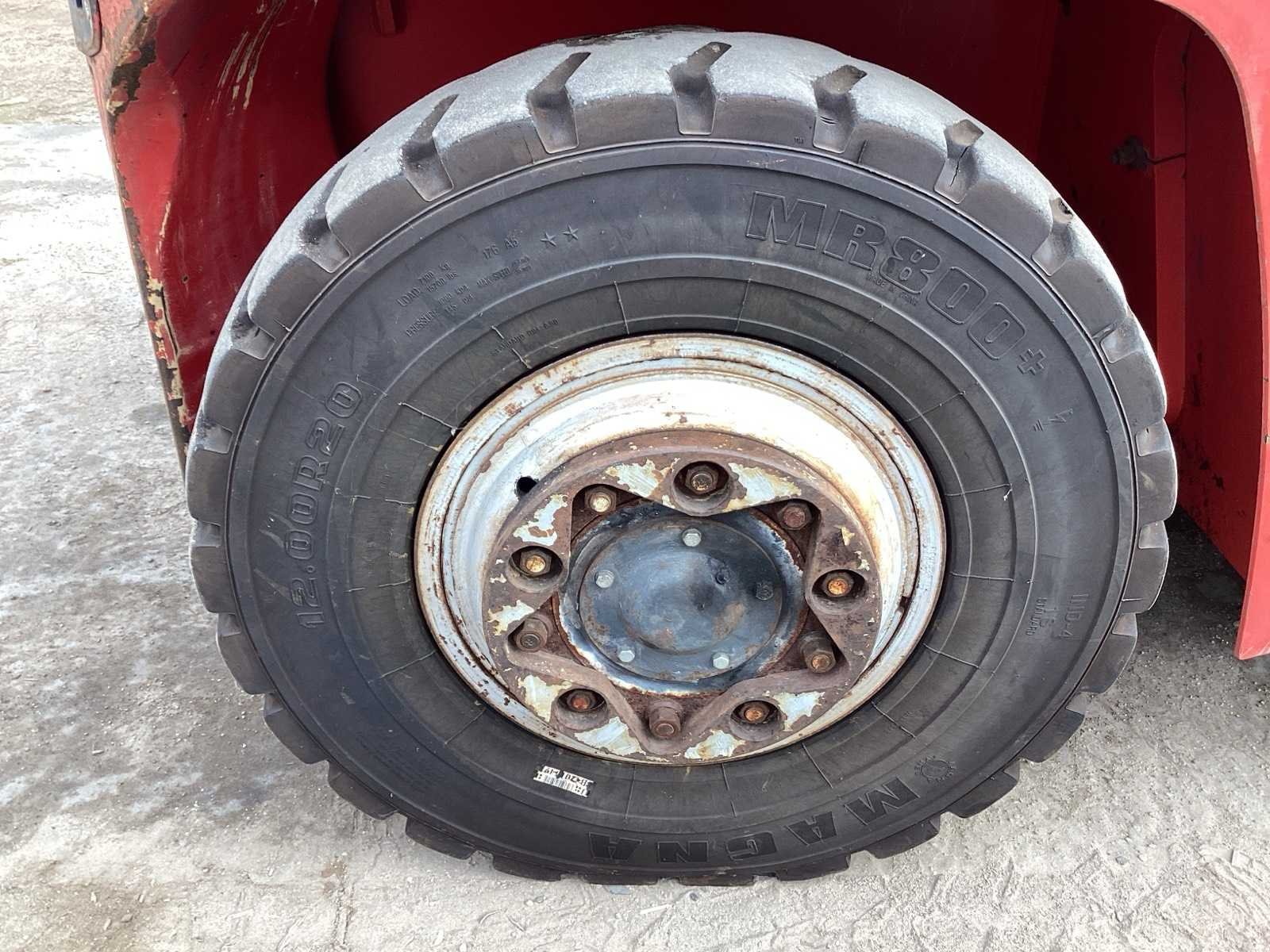 Volvo dieselmotor; 6 cilinder; Merk: Kalmar Type: DCE 150-12 Bouwjaar: 2010 Serienummer: A40200170 Brandstof: Diesel Mast: Duplex Soort band: Luchtbanden Aantal wielen: 4 Afgelezen urenstand: 18784 Hydraulisch verstelbare lepels: true Duplex mast: true Eigen gewicht: 23160kg Hefvermogen: 15000kg Lepellengte: 2400mm Max. hefhoogte: 5000mm Hefhoogte: 5000mm Luchtbanden: true Minimale doorrijhoogte: 4150mm