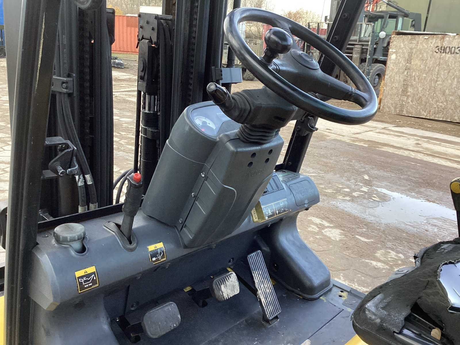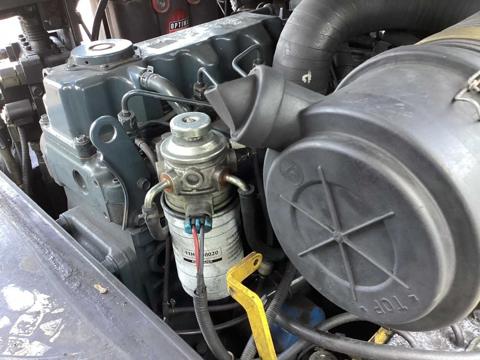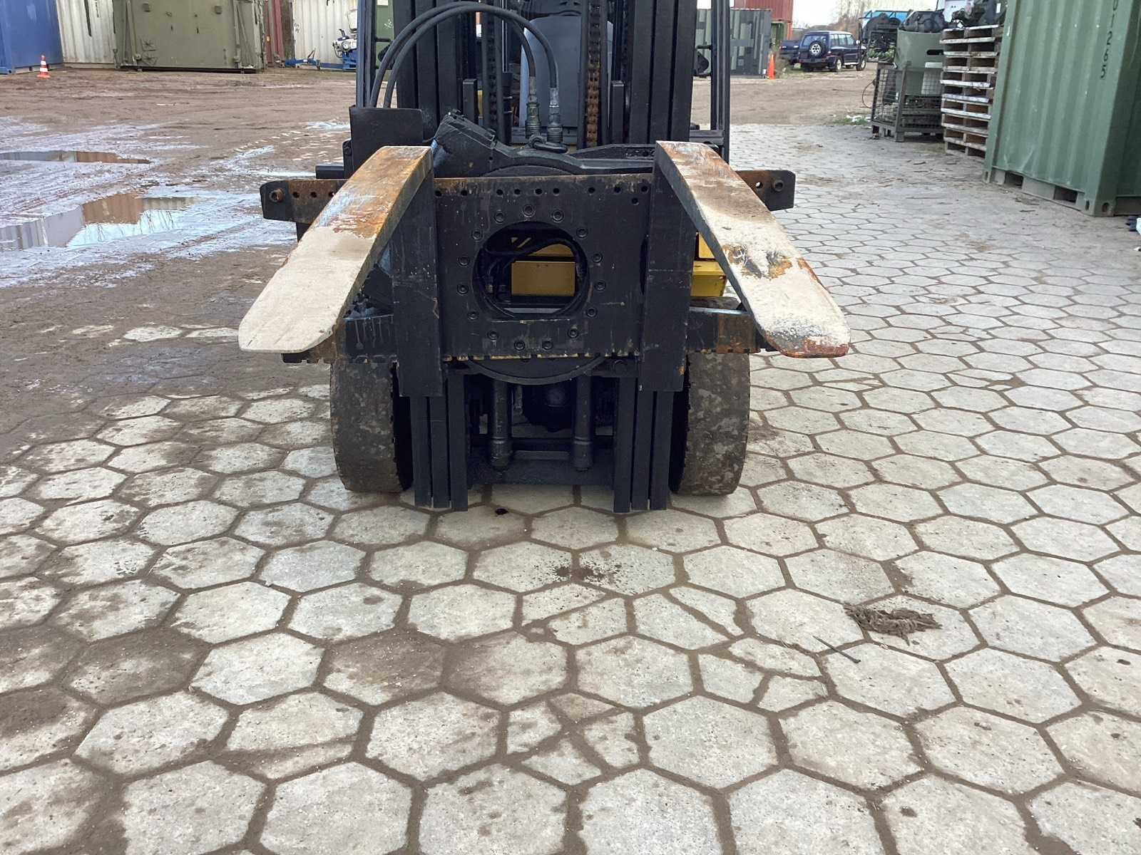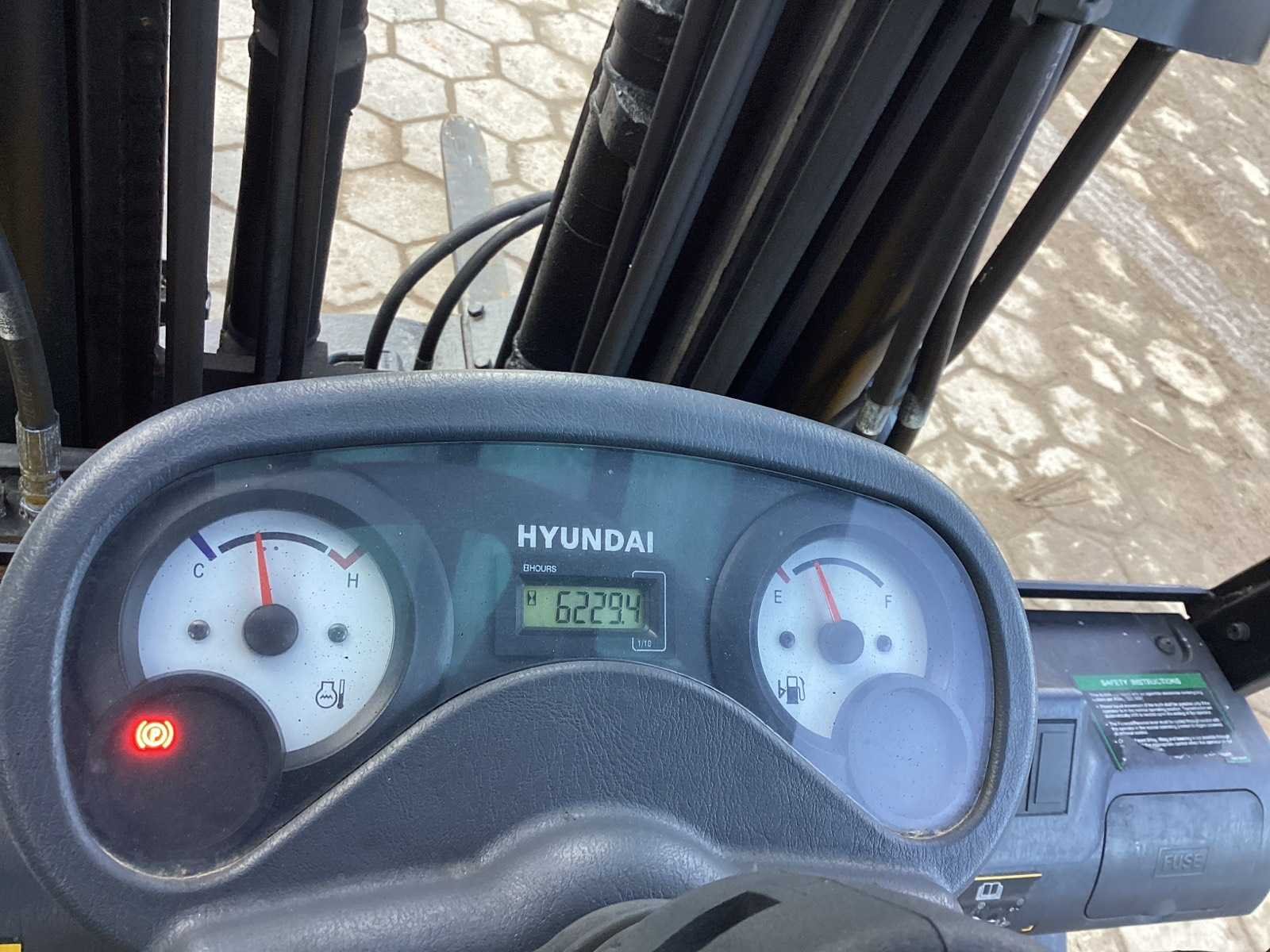 Kubota dieselmotor; 4 cilinder; Merk: Hyundai Type: 25 D Bouwjaar: 2012 Serienummer: HHKHHN02CC0002201 Brandstof: Diesel Mast: Triple Soort band: Volrubber banden Aantal wielen: 4 Afgelezen urenstand: 6229 Free-lift: true Side-shift: true Roterend vorkenbord: true Triple mast: true Eigen gewicht: 4322kg Hefvermogen: 2300kg Lepellengte: 1200mm Max. hefhoogte: 4700mm Hefhoogte: 4700mm Vol rubber banden: true Minimale doorrijhoogte: 2200mm Diesel: true