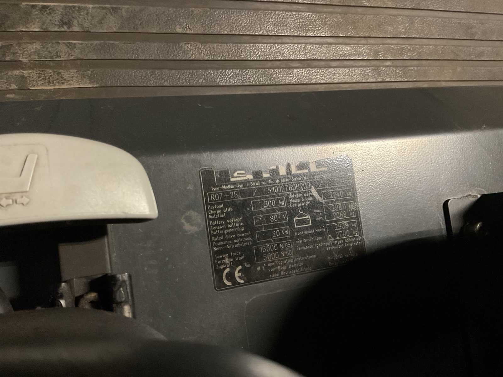 Geen lader; Merk: Still Type: R07-25 Bouwjaar: 2016 Serienummer: 510127G00203 Afmeting l: 3340cm Afmeting b: 1300cm Afmeting h: 1300cm Eigen gewicht: 2240kg