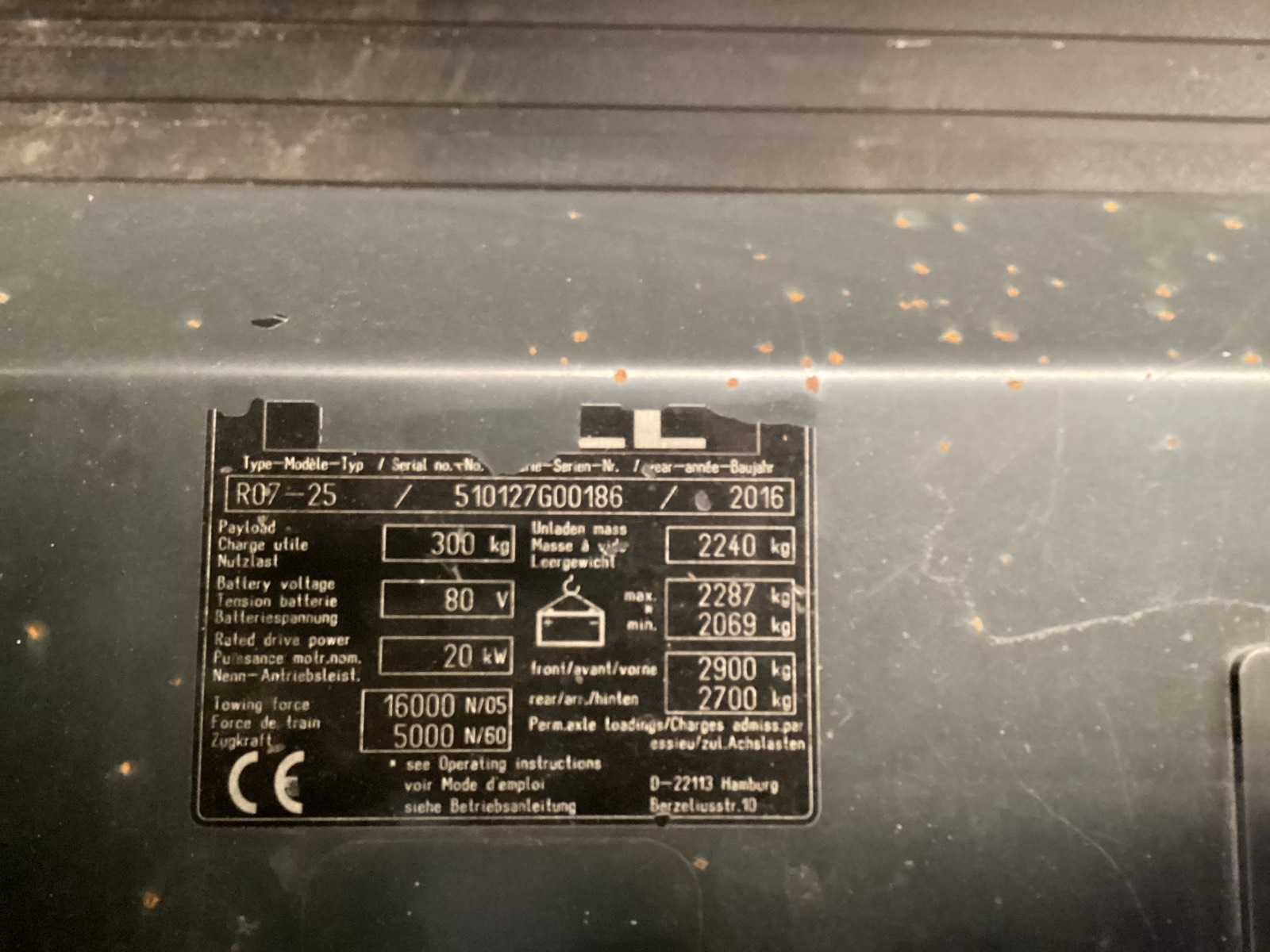 Geen lader; 8421 uur; Merk: Still Type: R07-25 Bouwjaar: 2016 Serienummer: 510127G00203 Afmeting l: 3340cm Afmeting b: 1300cm Afmeting h: 1300cm Eigen gewicht: 2240kg