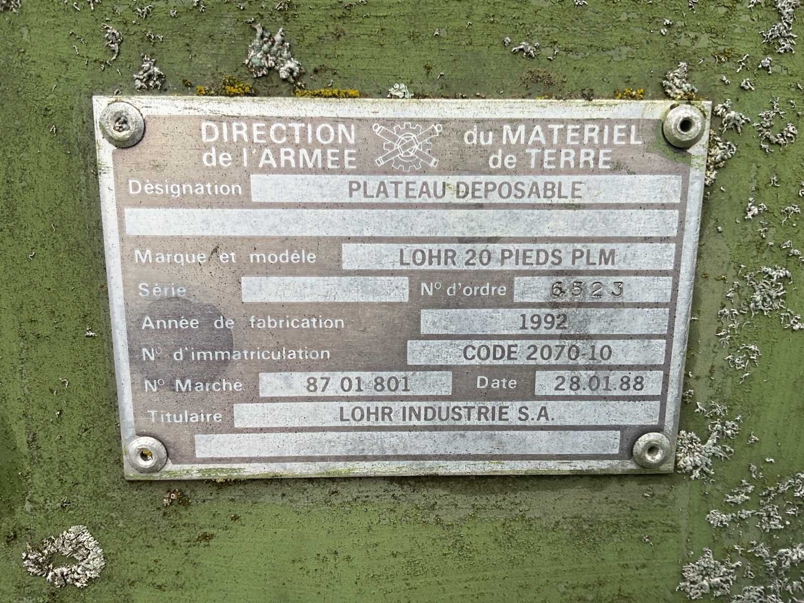 20 Ft; Merk: Lohr Type: 20 pieds plm Bouwjaar: 1992 Totale afmeting L: 6050mm Totale afmeting Breedte: 2415mm Totale afmeting Hoogte: 1600mm