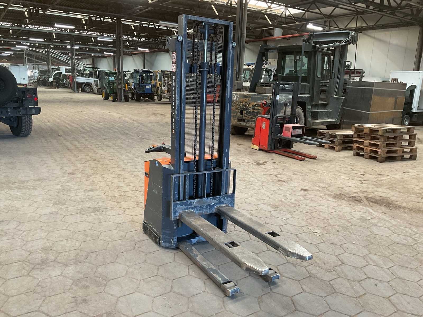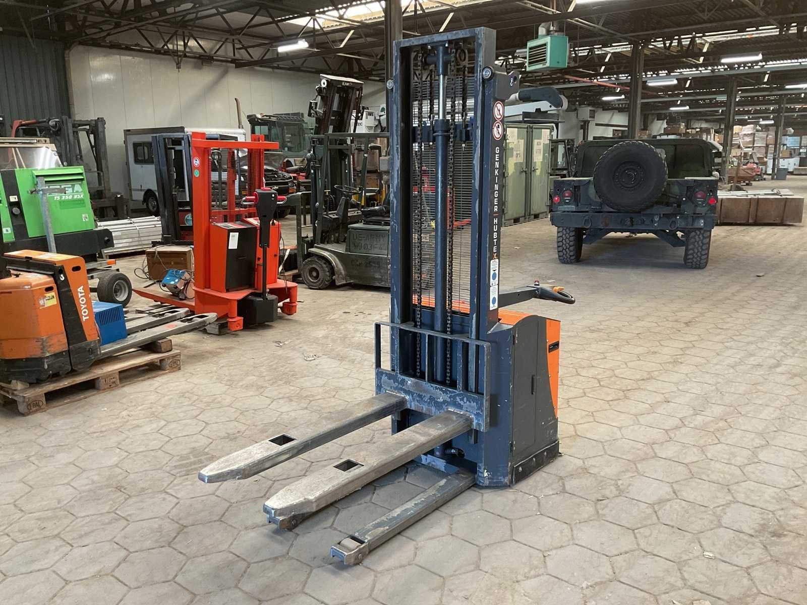 Merk: Genkinger Hubtex Type: EGVT 10/30 Bouwjaar: 2012 Serienummer: 2002726 Hefvermogen: 1000kg Lepellengte: 1150mm Afgelezen urenstand: 1175 Eigen gewicht: 760kg Minimale doorrijhoogte: 2000mm