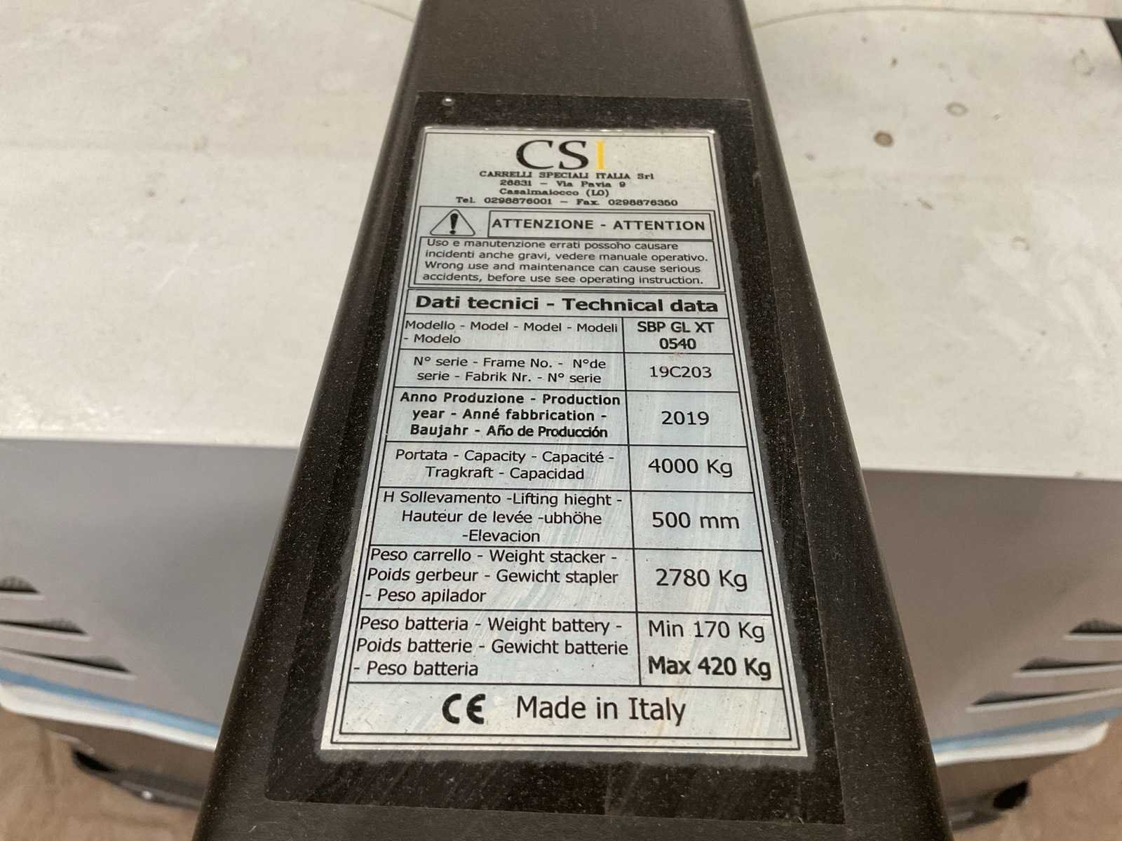 Merk: UniCarriers Type: SPB GL XT Bouwjaar: 2019 Serienummer: 19C203 Hefvermogen: 4000kg Hefhoogte: 500mm Lepellengte: 2180mm Eigen gewicht: 2780kg Minimale doorrijhoogte: 1450mm