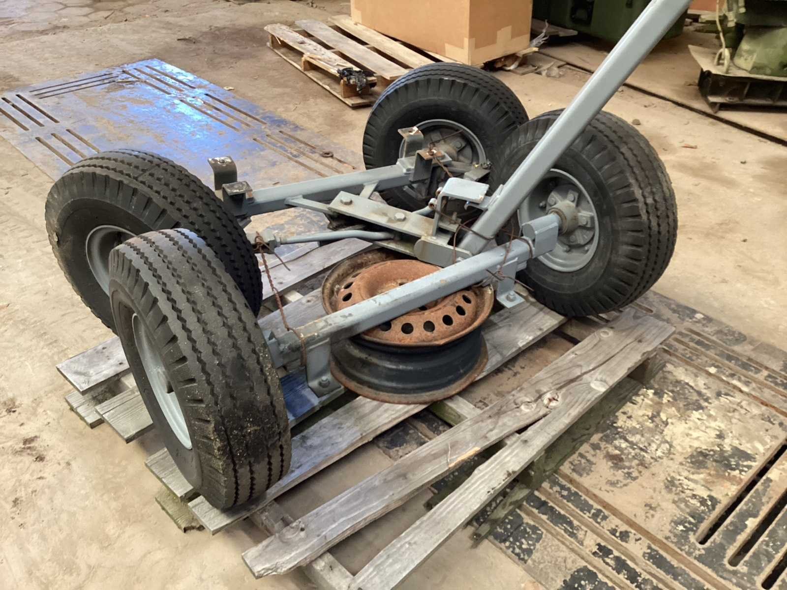 Bandenmaat 6.00 x 9; 1 as fuseegestuurd; 1 as niet gestuurd; foto is voorbeeld; Breedte: 120cm